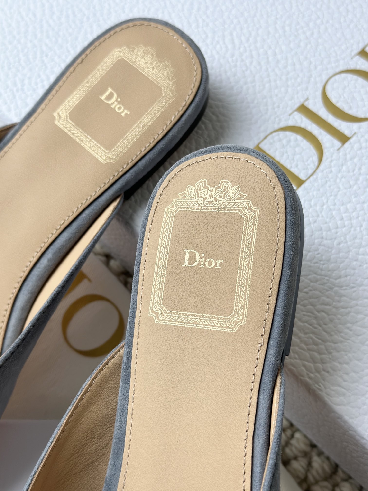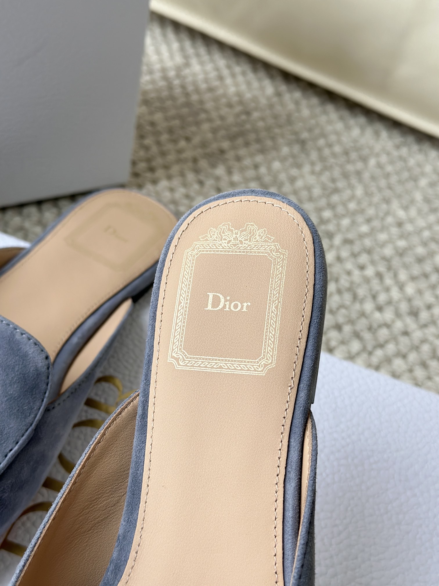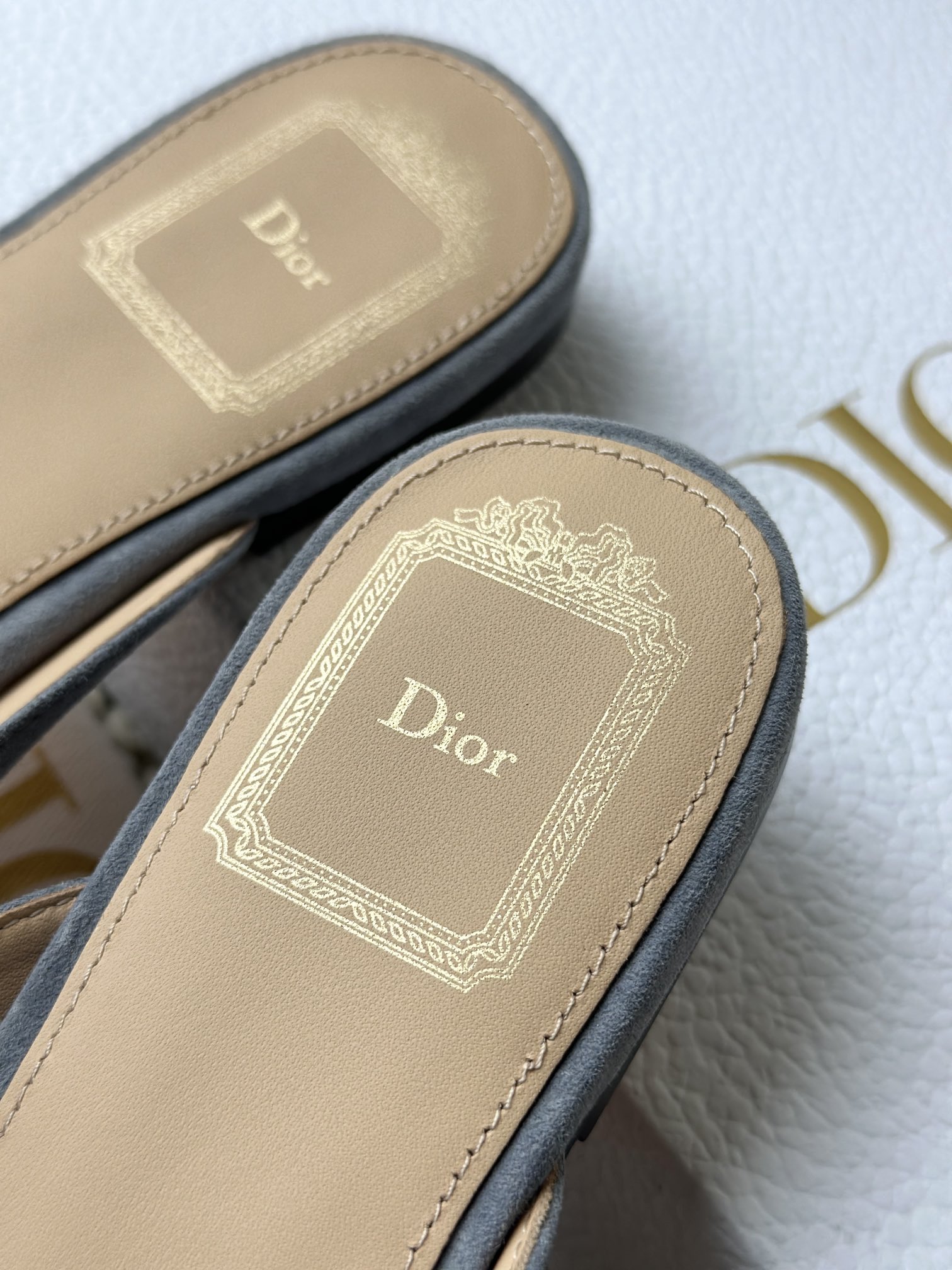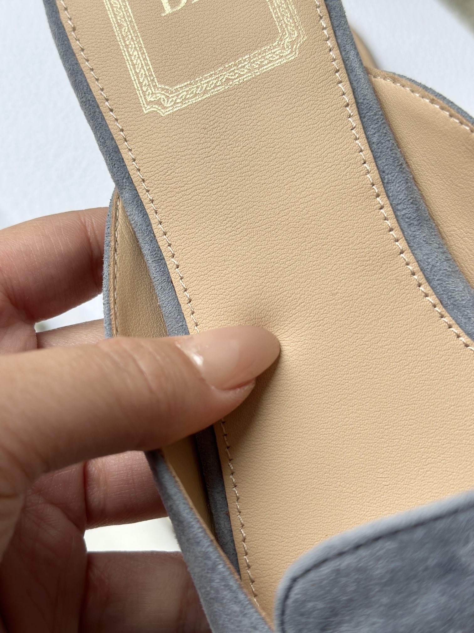 羊皮垫脚,4K镜头下还能清晰地看见Dior压印!辨识度超高,拉近看羊皮的毛孔都清晰可见,透气不闷脚、不臭脚