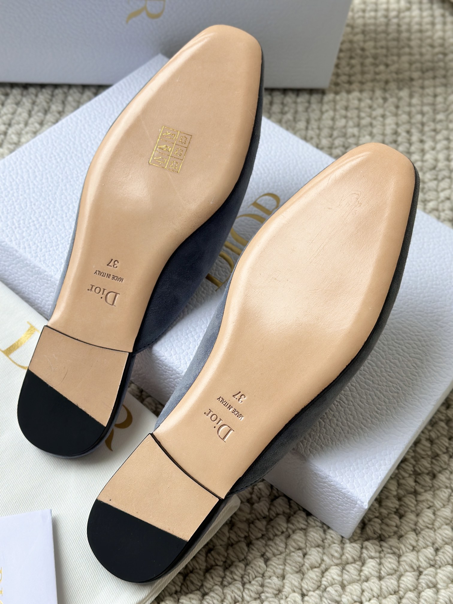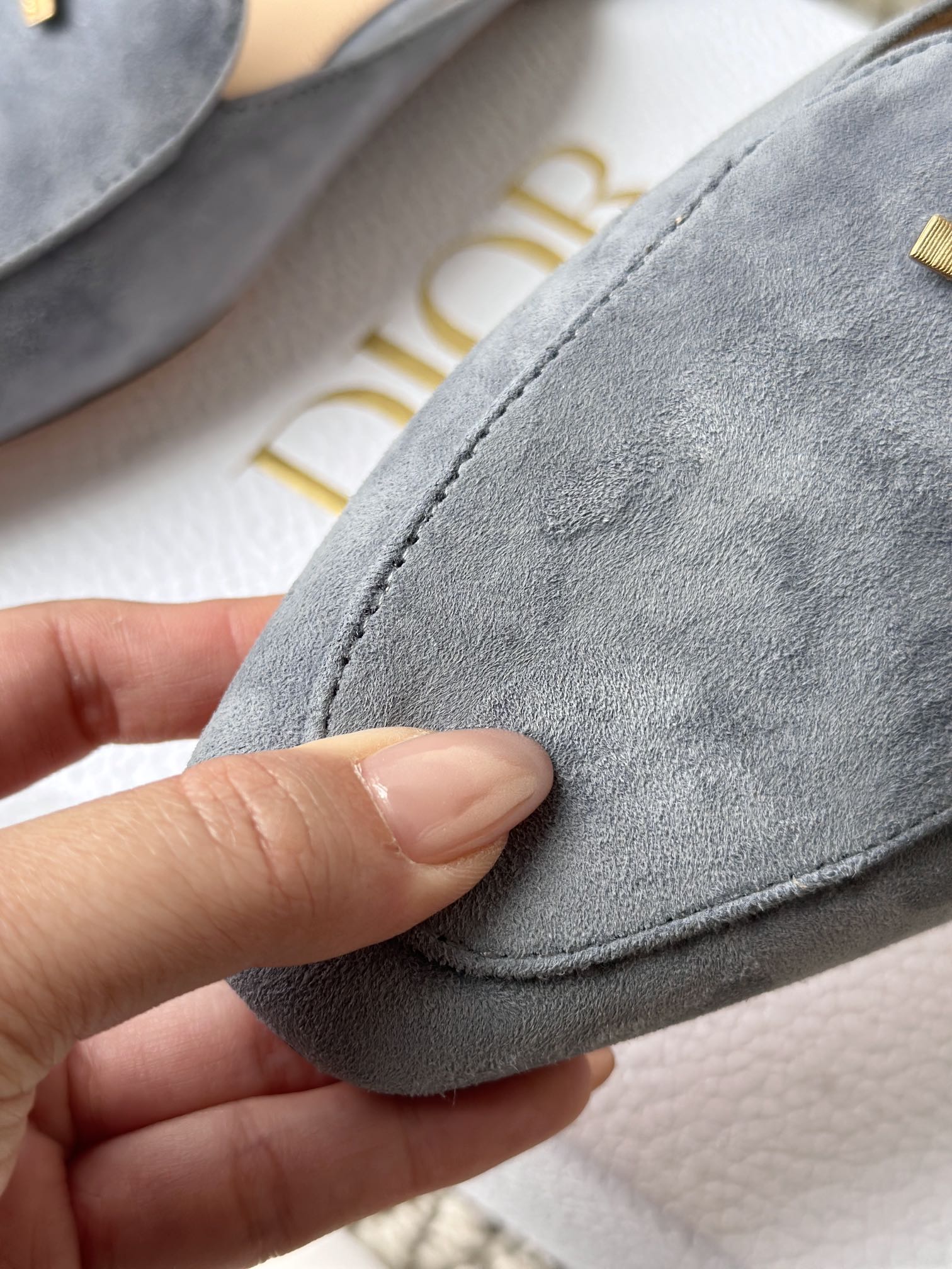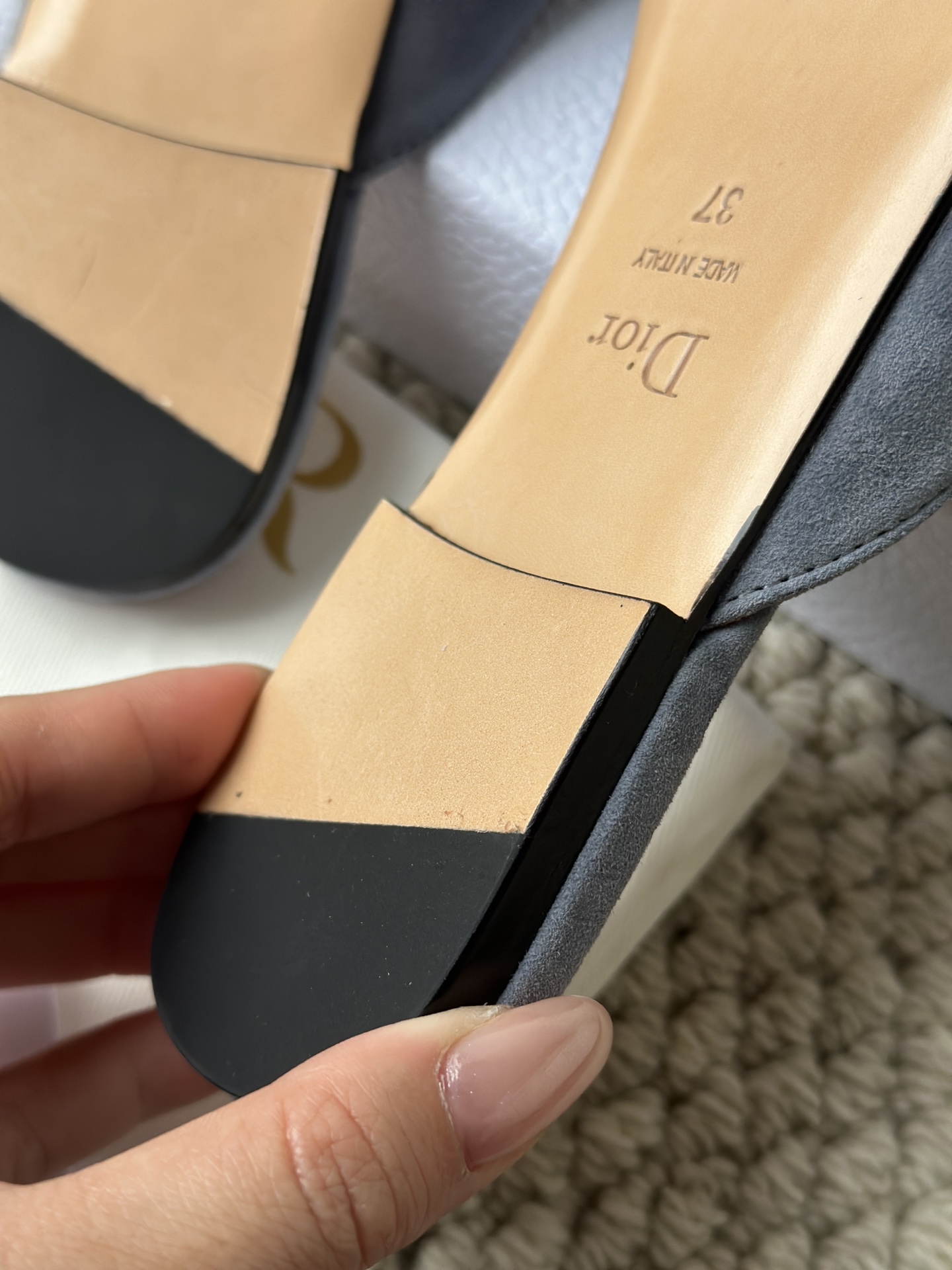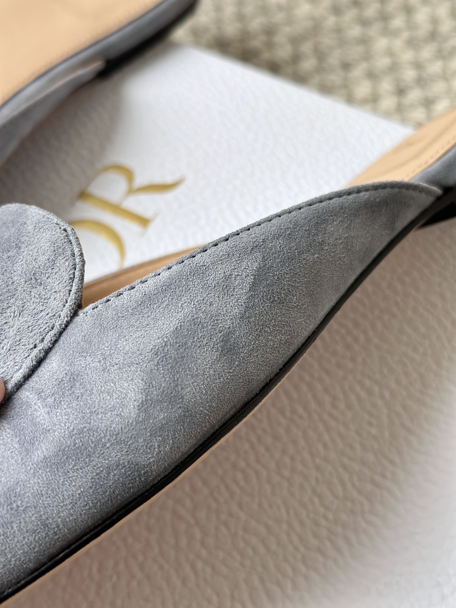 羊皮垫脚,4K镜头下还能清晰地看见Dior压印!辨识度超高,拉近看羊皮的毛孔都清晰可见,透气不闷脚、不臭脚