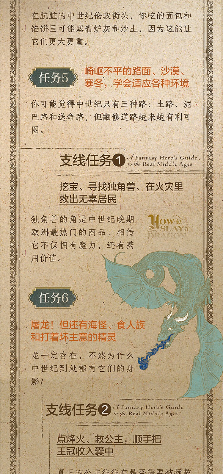 ★巨龙、海怪、精灵、独角兽……在真实世界里重新认识熟悉的奇幻元素:中世纪的人会不会时刻准备应对巨龙的攻击?市面上珍贵的“独角兽之角”究竟是什么?世界的边缘真的有食人族吗?中世纪的人真的相信魔法吗?中世纪对奇幻文学的滋养并非毫无依据,在冒险途中了解《冰与火之歌》《指环王》等巨作中恢弘世界的灵感从何而来。