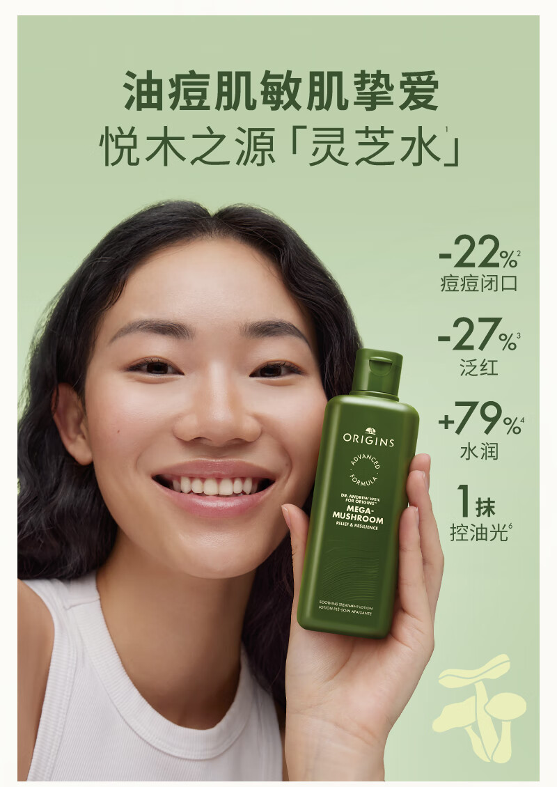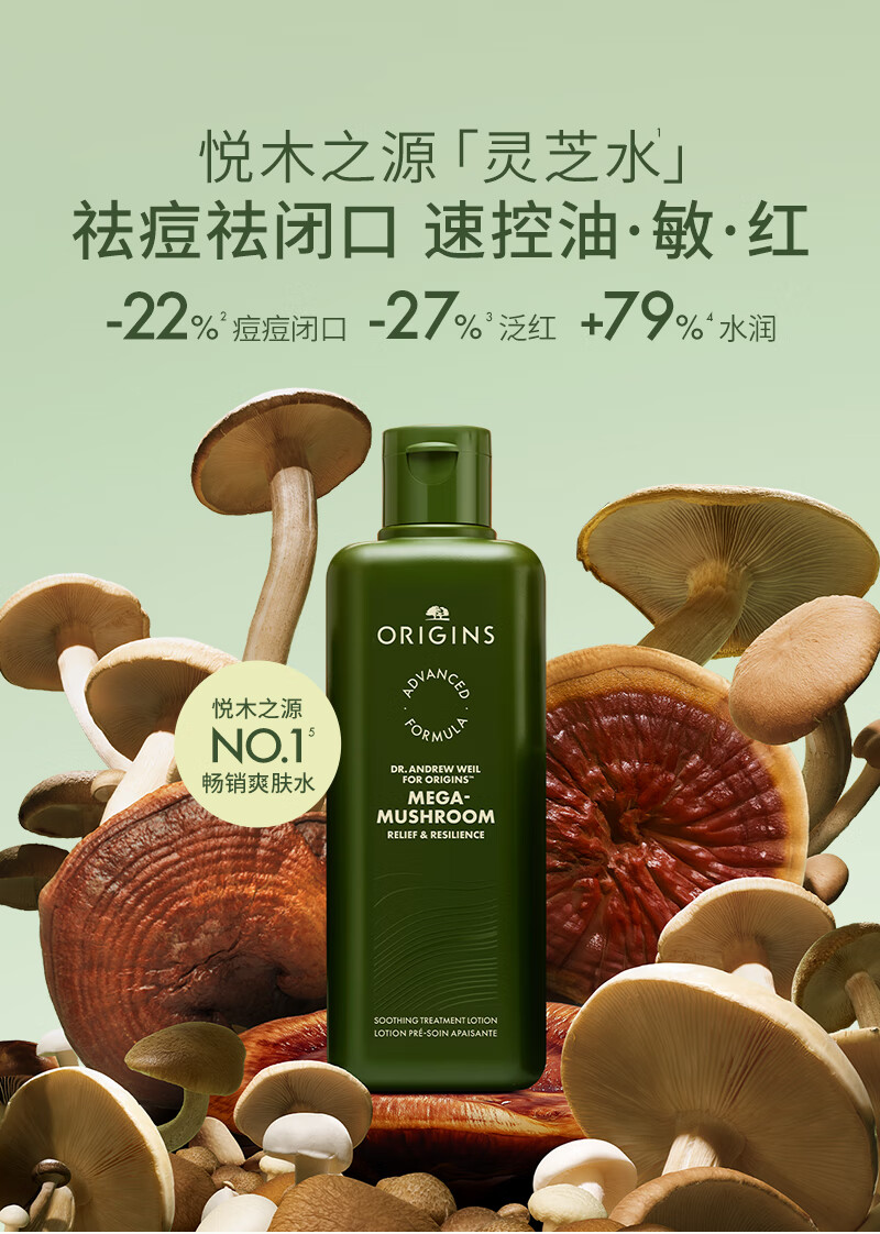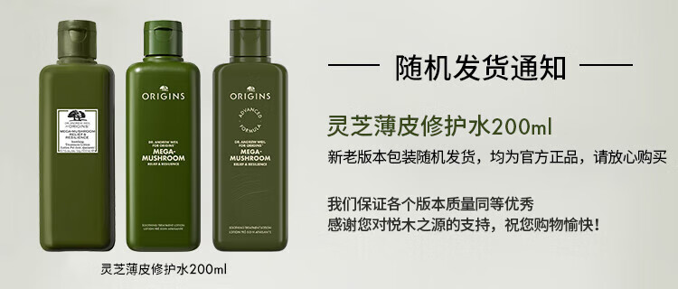 悦木之源ORIGINS 韦博士灵芝焕能好底子精华水200ml(菌菇水)