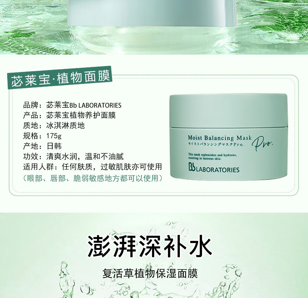 苾莱宝 Bb LABORATORIES 复活草舒缓保湿补水涂抹面膜 175g