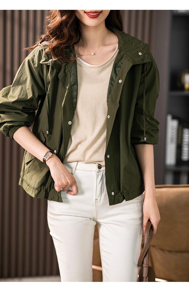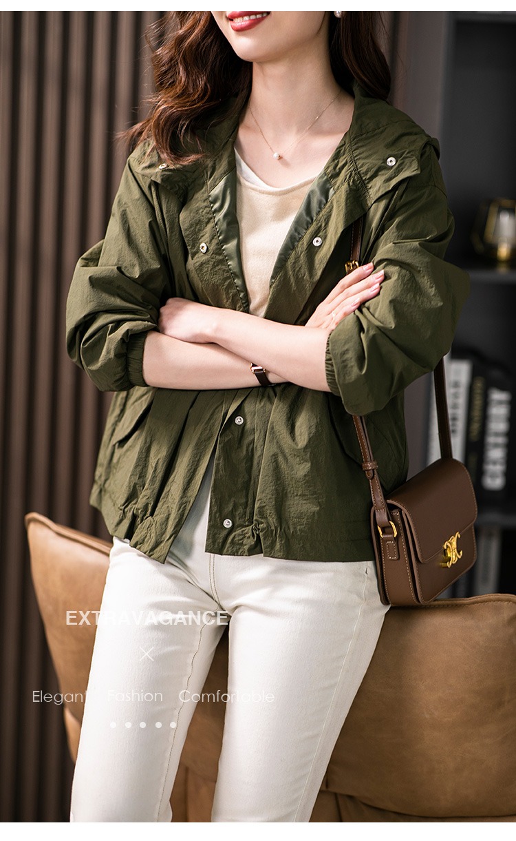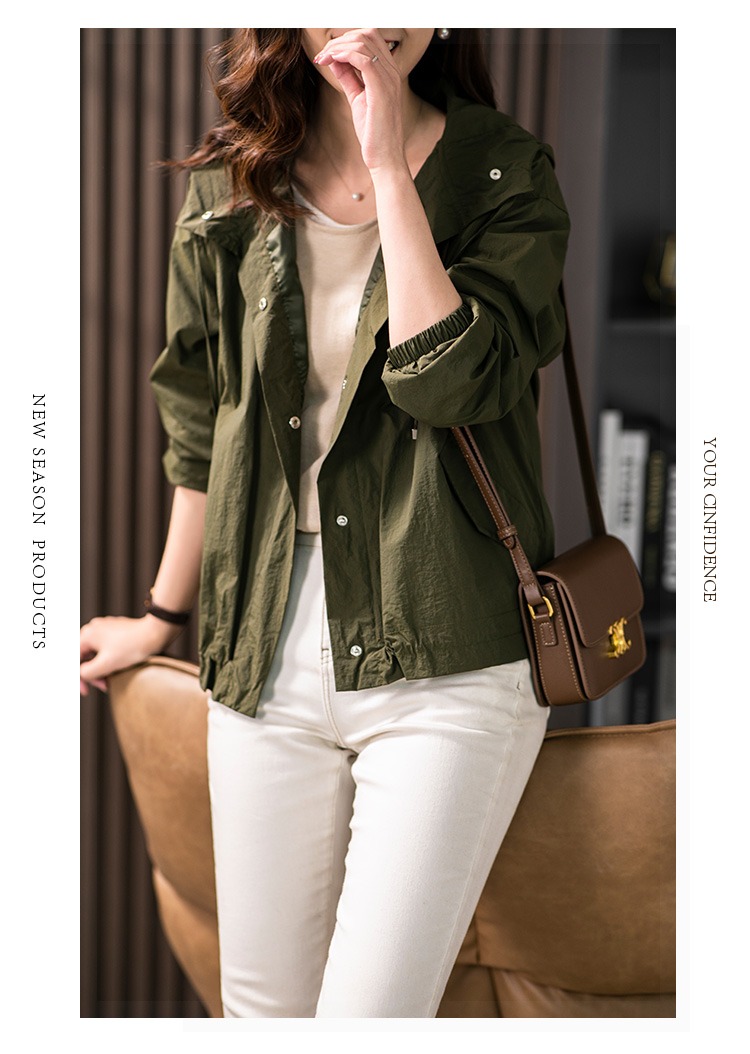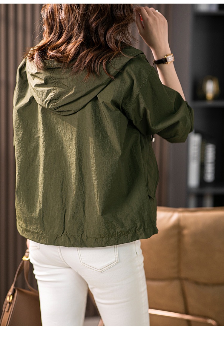 【现货7天】设计感连帽短外套女2023秋季新款韩版宽松休闲夹克防晒衣