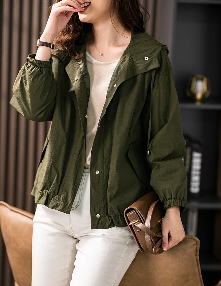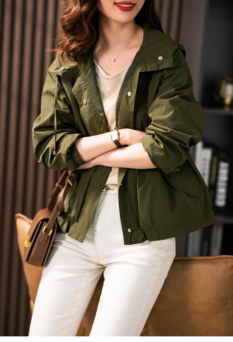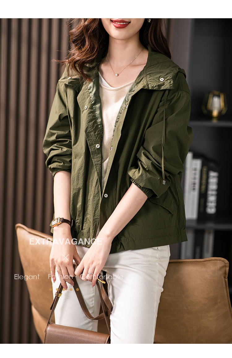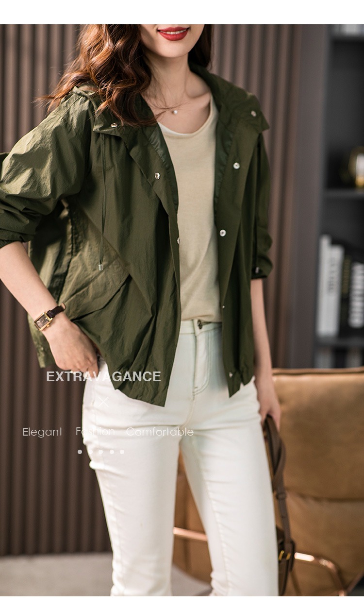 【现货7天】设计感连帽短外套女2023秋季新款韩版宽松休闲夹克防晒衣