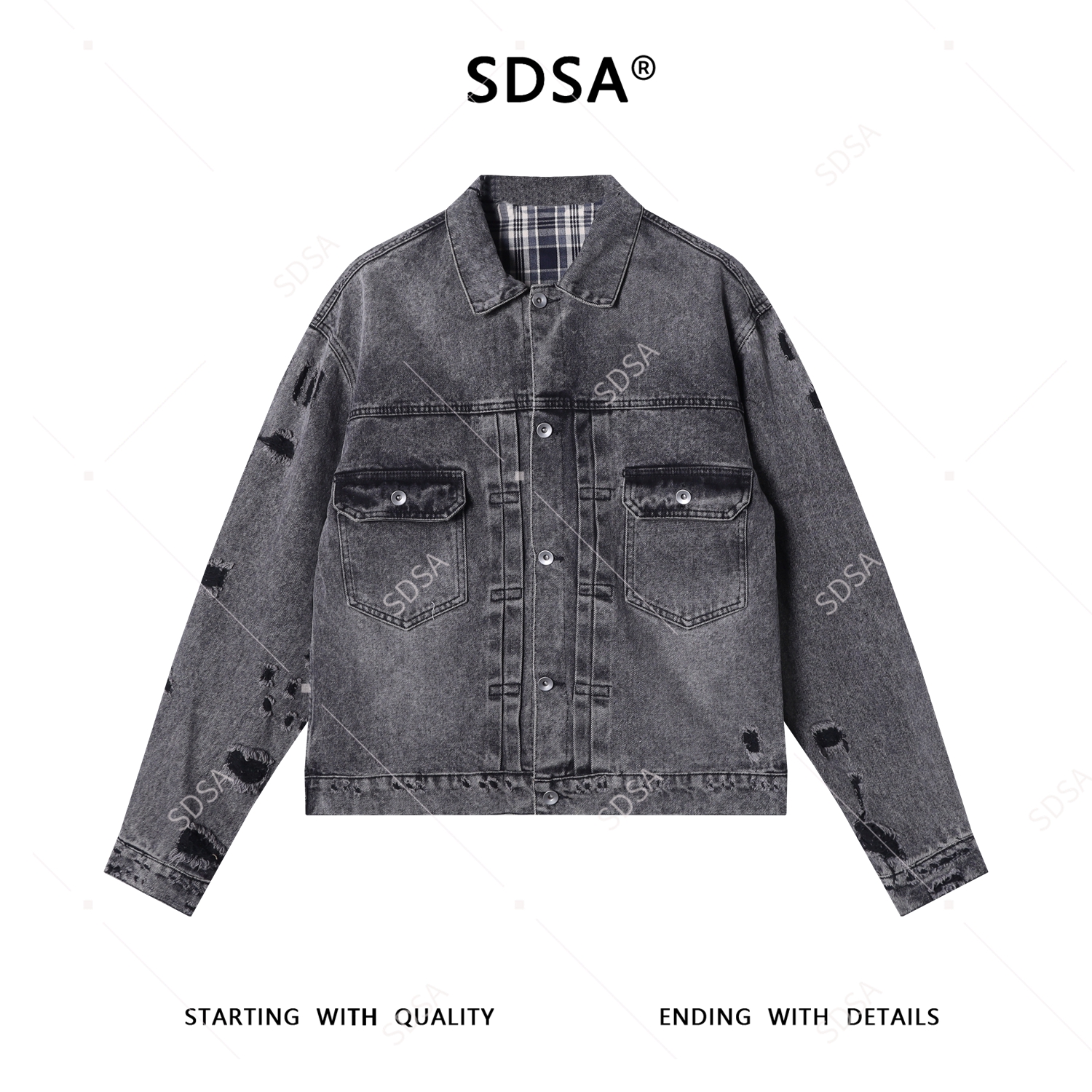 25101SDSA男士秋冬新款痞帅男装简约磨白磨破翻领纽扣夹克外套百搭时尚
