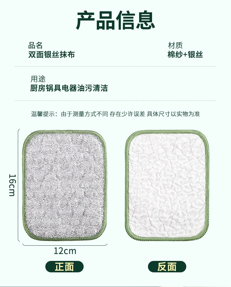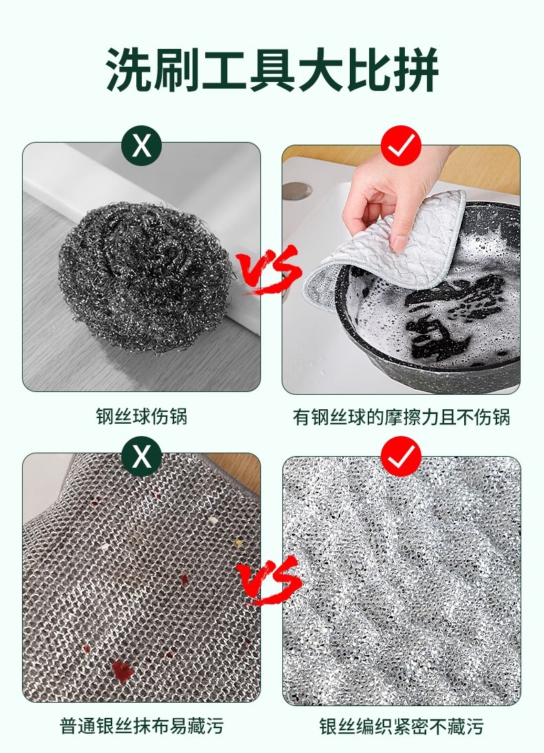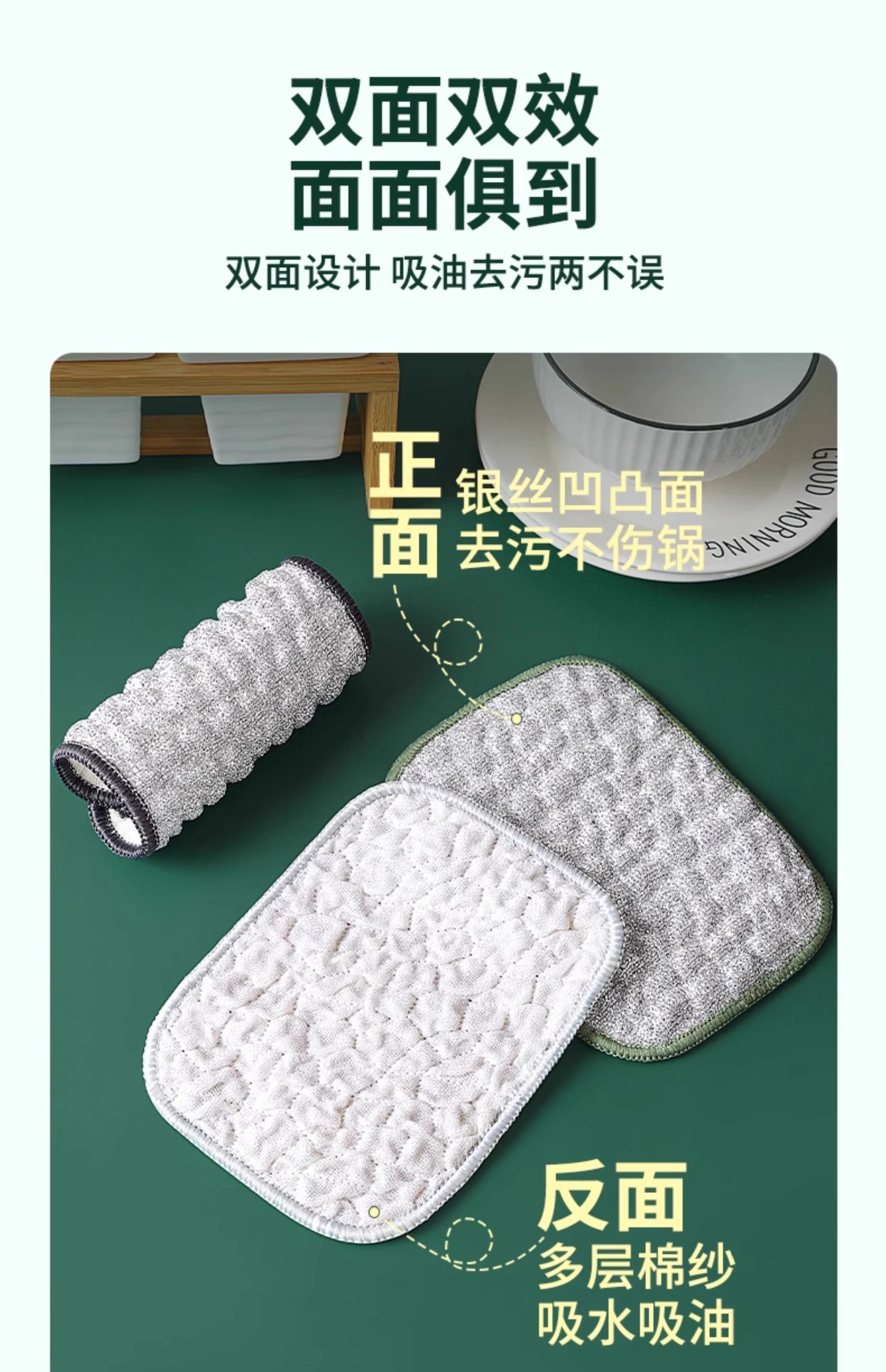 双面银丝洗碗布 泡泡抹布百洁布厨房用品专用银丝棉纱洗碗巾双层加厚不易沾油刷碗
