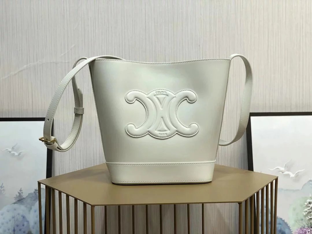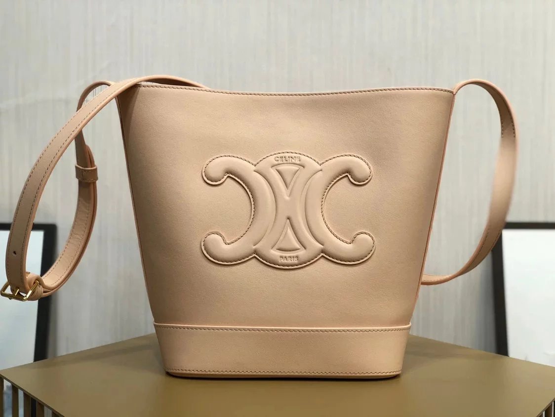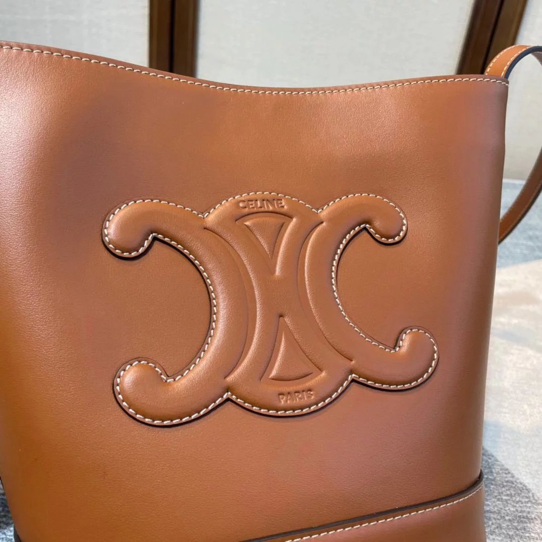 塞林|CELINE 2022春夏新款凯旋门 CUIR水桶包 CELINE 2022春夏新款CUIR水桶、采用凯旋门立体大logo更加知性成熟、牛皮材质质感很好,采用全皮上身重量较轻。肩带可调节,?️斜挎?️单肩 包口内部有扣子可以扣、无论学生党还是宝妈、容量随处可见的大 强烈! 款号:198243 黄褐棕 尺寸:30×22×13(配原版包装)