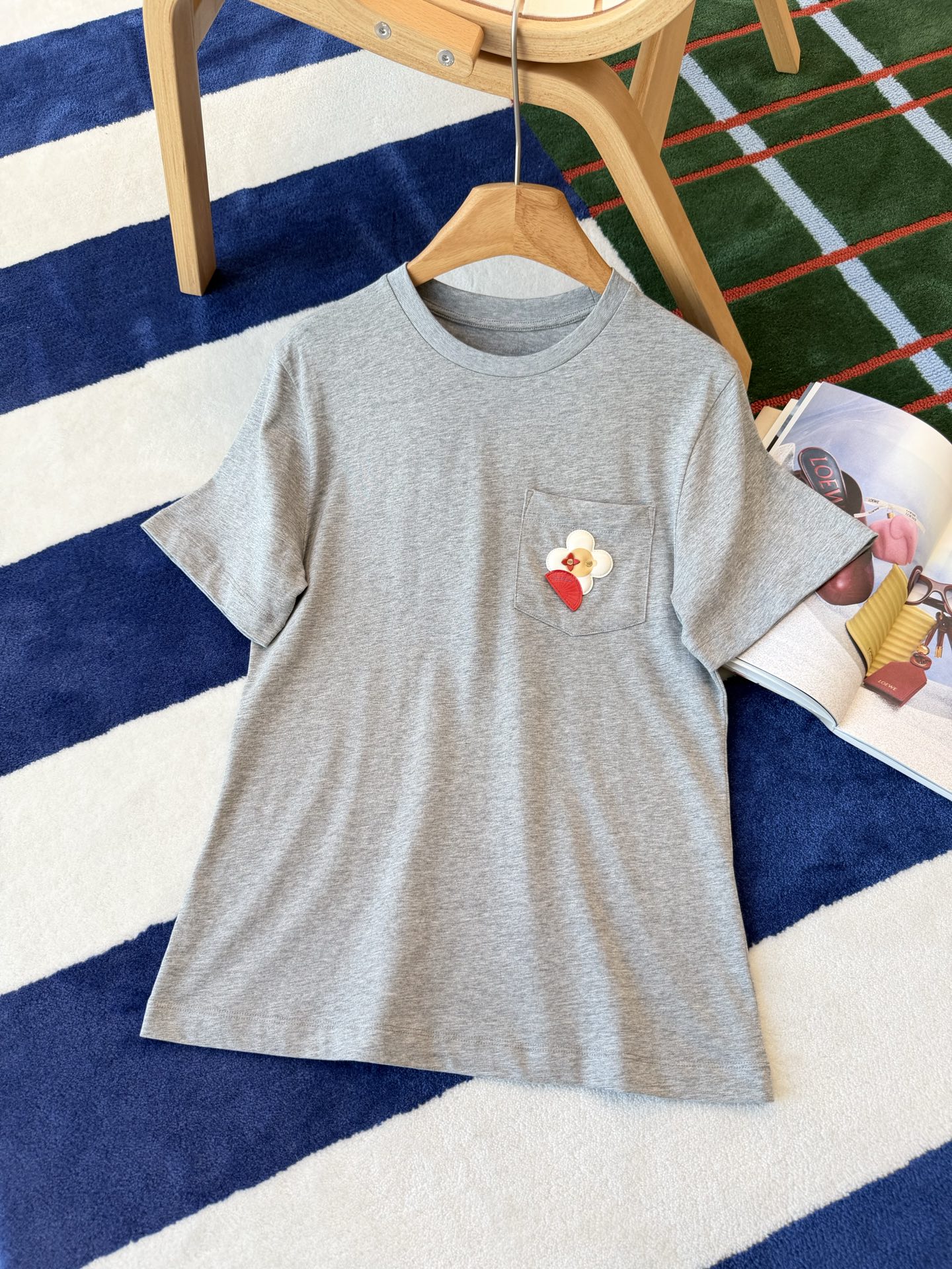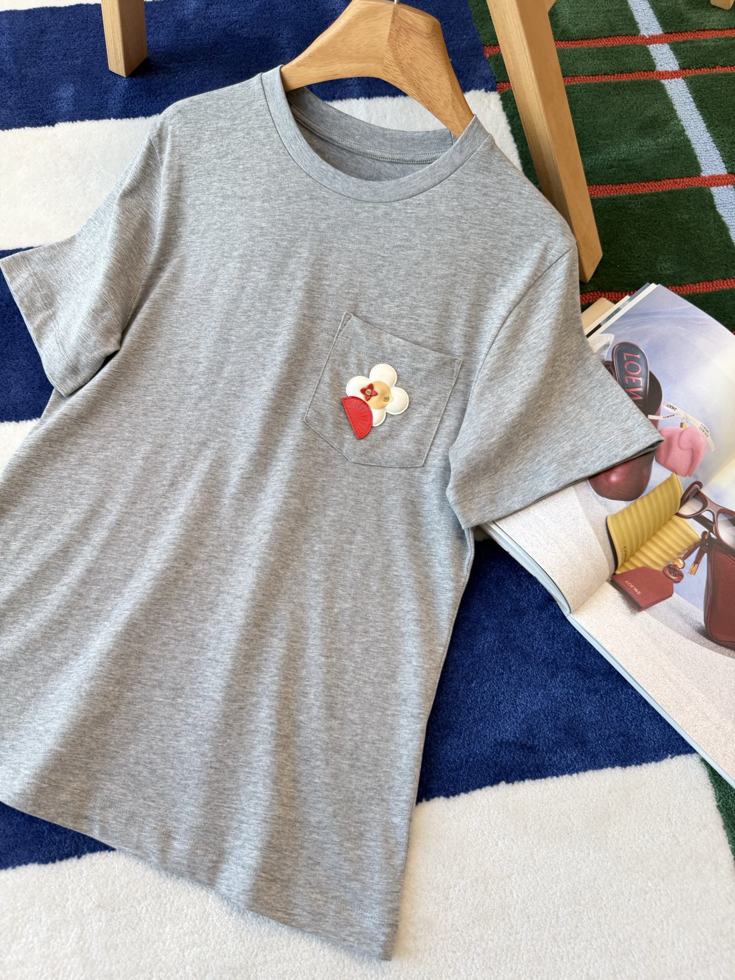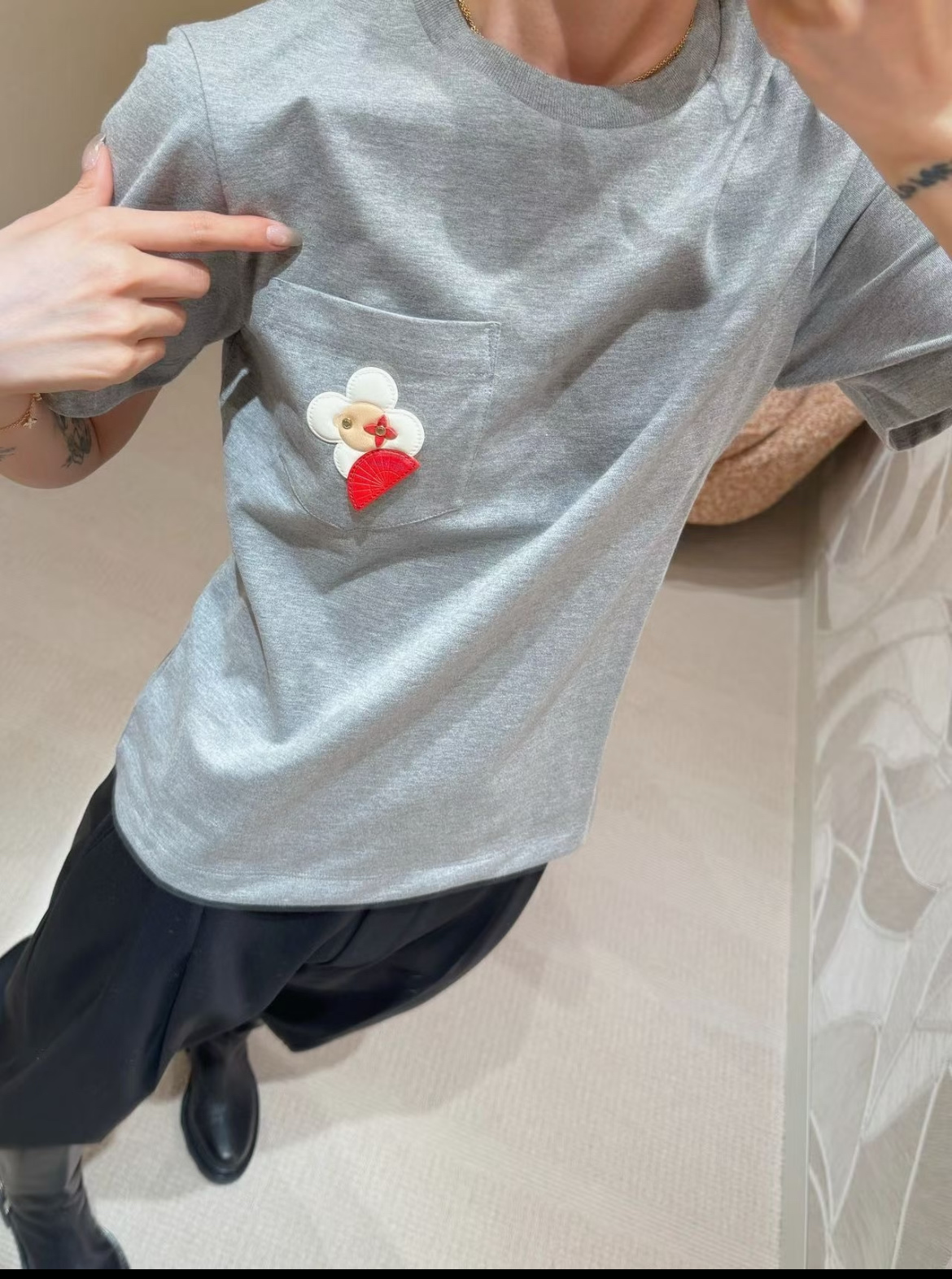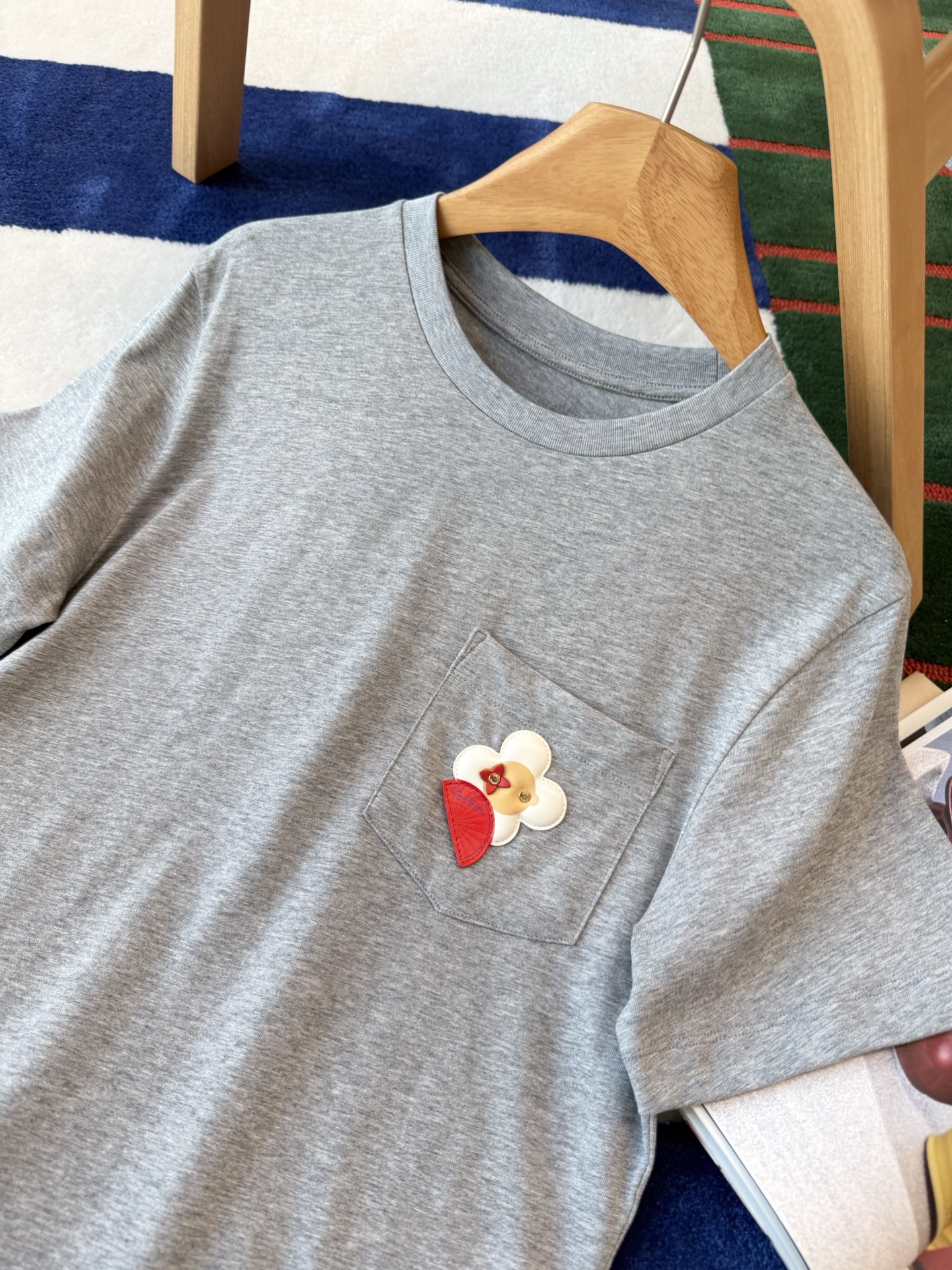 【爆款来袭】2026春夏最新♥️品牌的吉祥物Vivienne藏在口袋里🗯️低调里藏着精致小心机🌼• YB定制高支棉面料😘小牛皮重工皮牌'独家开模!细节完全跟足YB✨✨区别市场通货!灰色调的松弛感💍是不费力的高级感🫧一件能穿很久的基础款,因为有了刺绣细节,变得与众不同☀️码数SML
