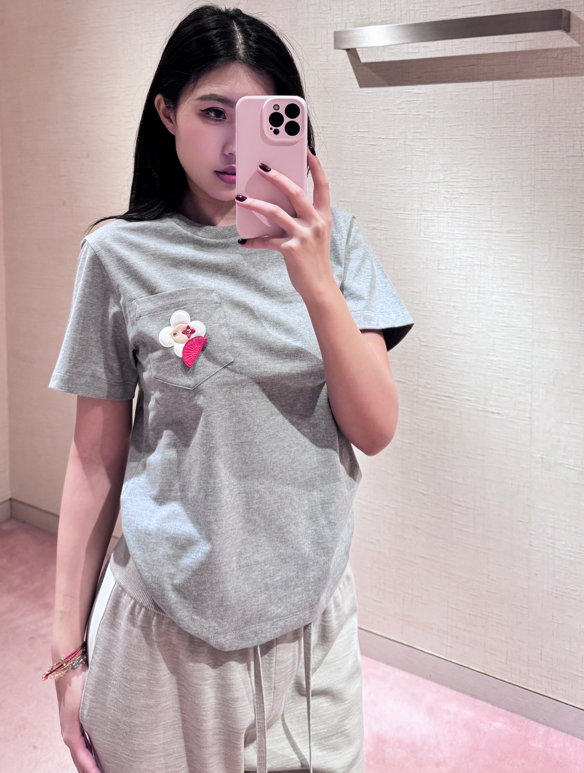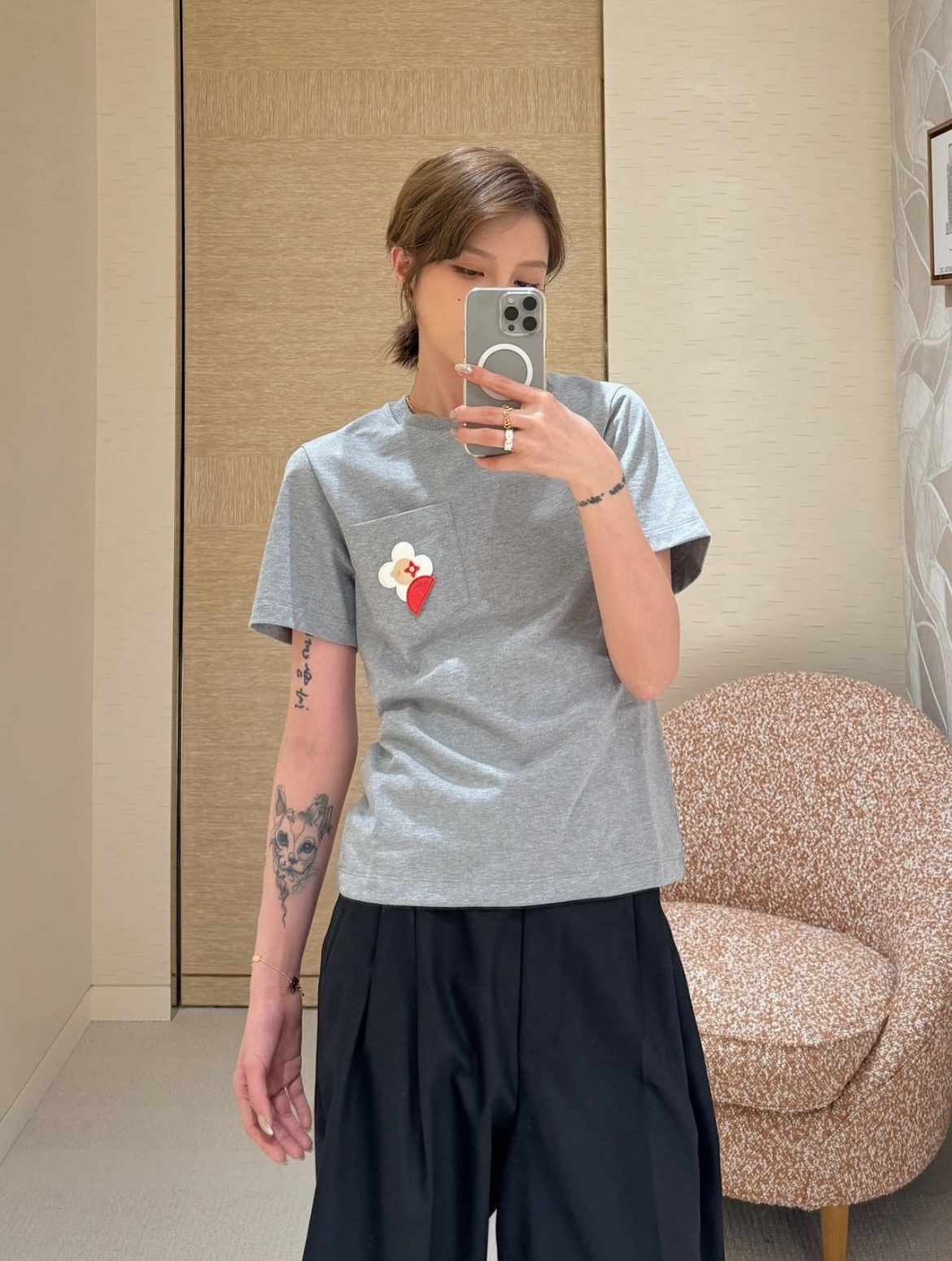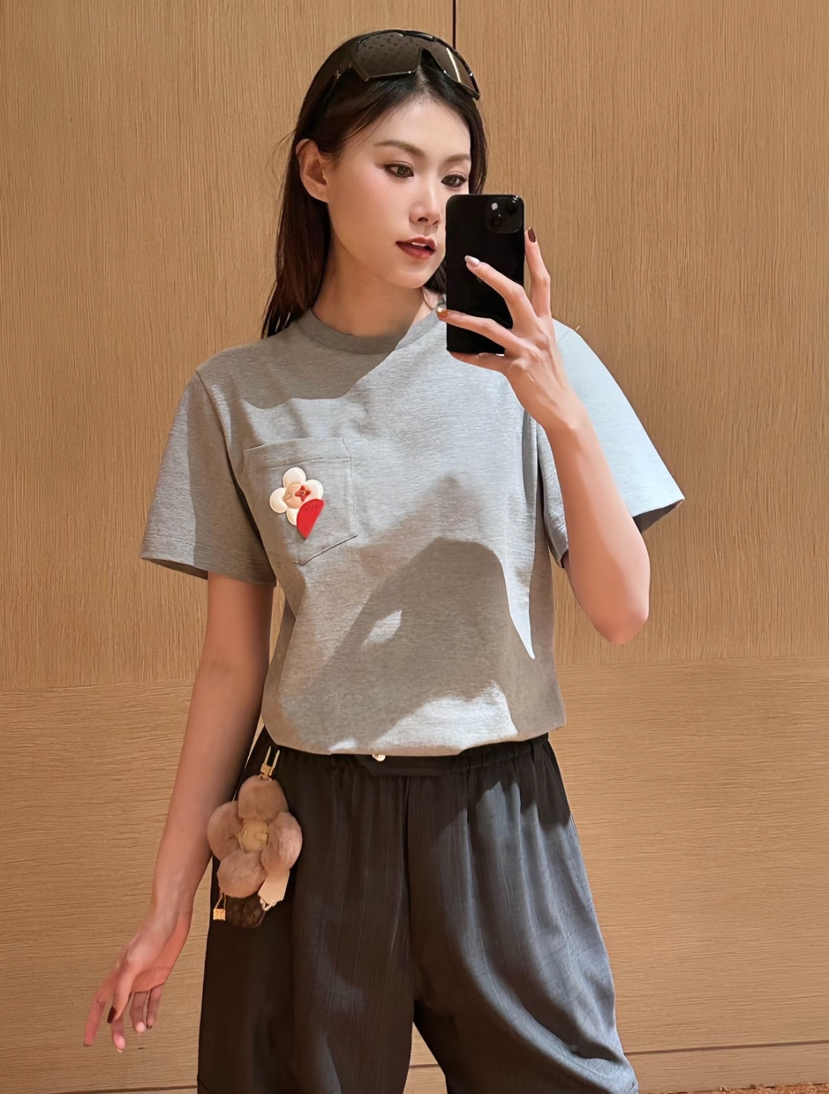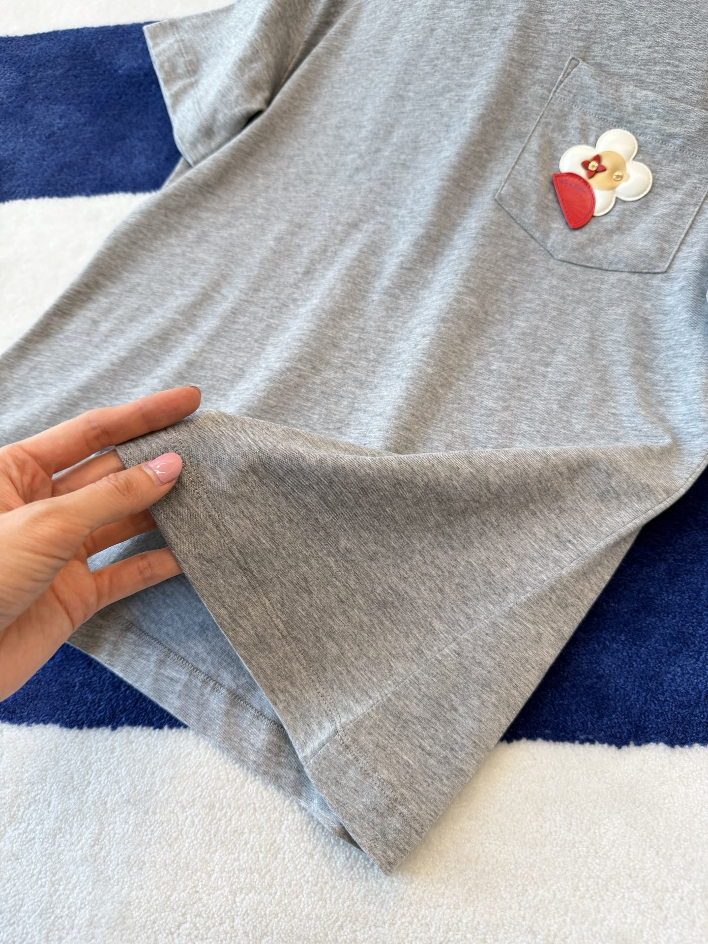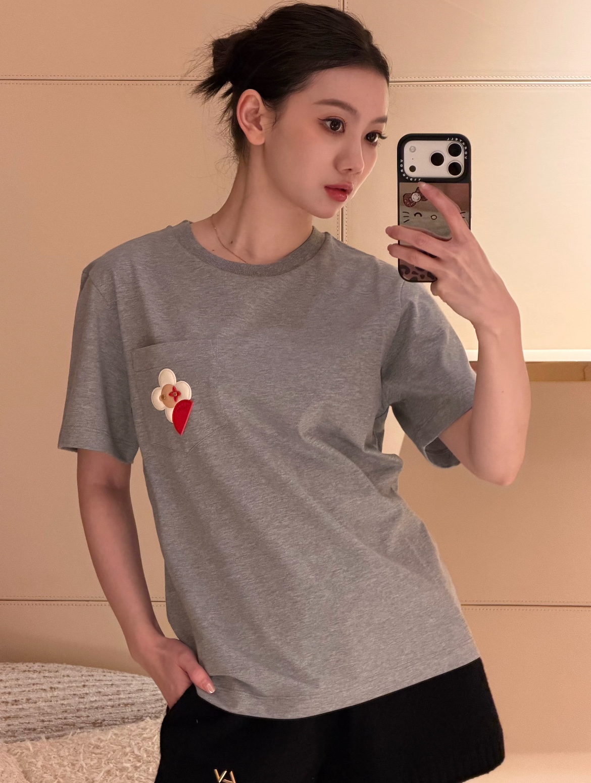 【爆款来袭】2026春夏最新♥️品牌的吉祥物Vivienne藏在口袋里🗯️低调里藏着精致小心机🌼• YB定制高支棉面料😘小牛皮重工皮牌'独家开模!细节完全跟足YB✨✨区别市场通货!灰色调的松弛感💍是不费力的高级感🫧一件能穿很久的基础款,因为有了刺绣细节,变得与众不同☀️码数SML