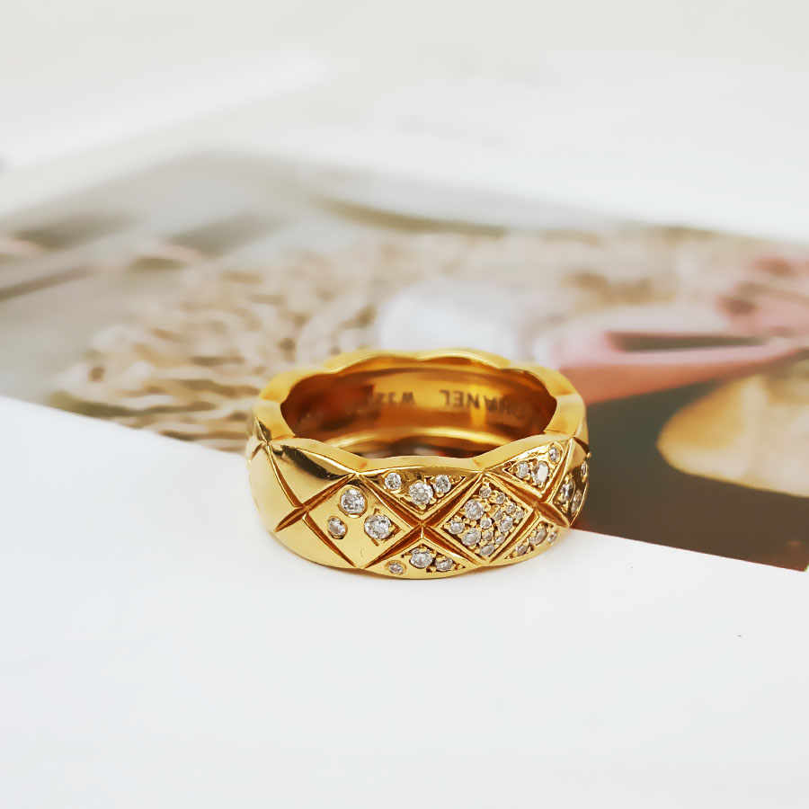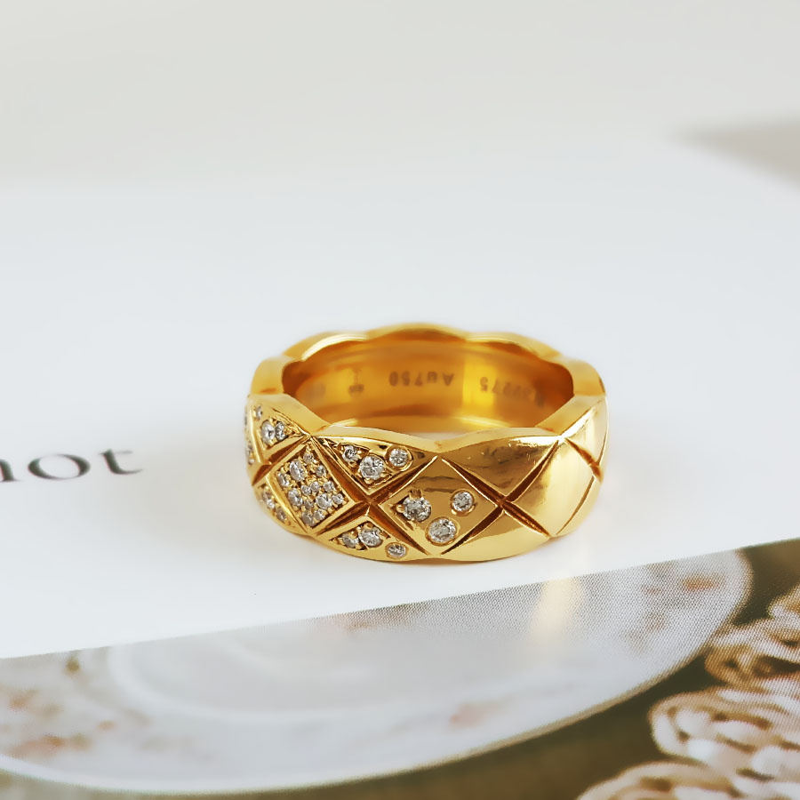款式 | AU750黄金简约时尚定制款群镶钻石戒指 |