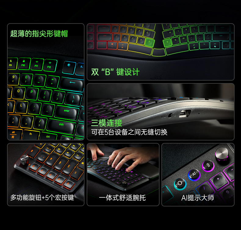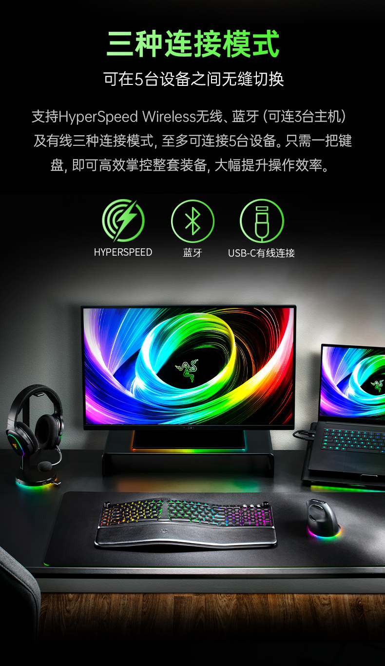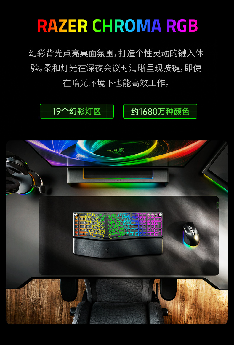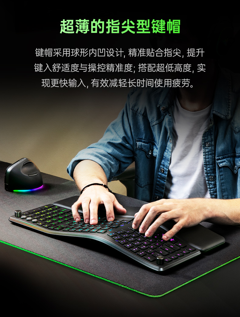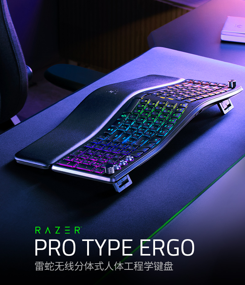 【限时双倍积分】Razer雷蛇 Pro Type Ergo分体式人体工程学无线键盘【雷蛇官方直营,3年有限质保】