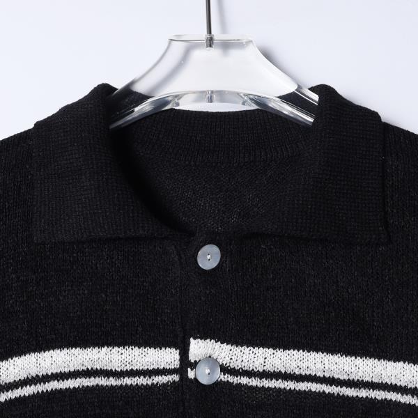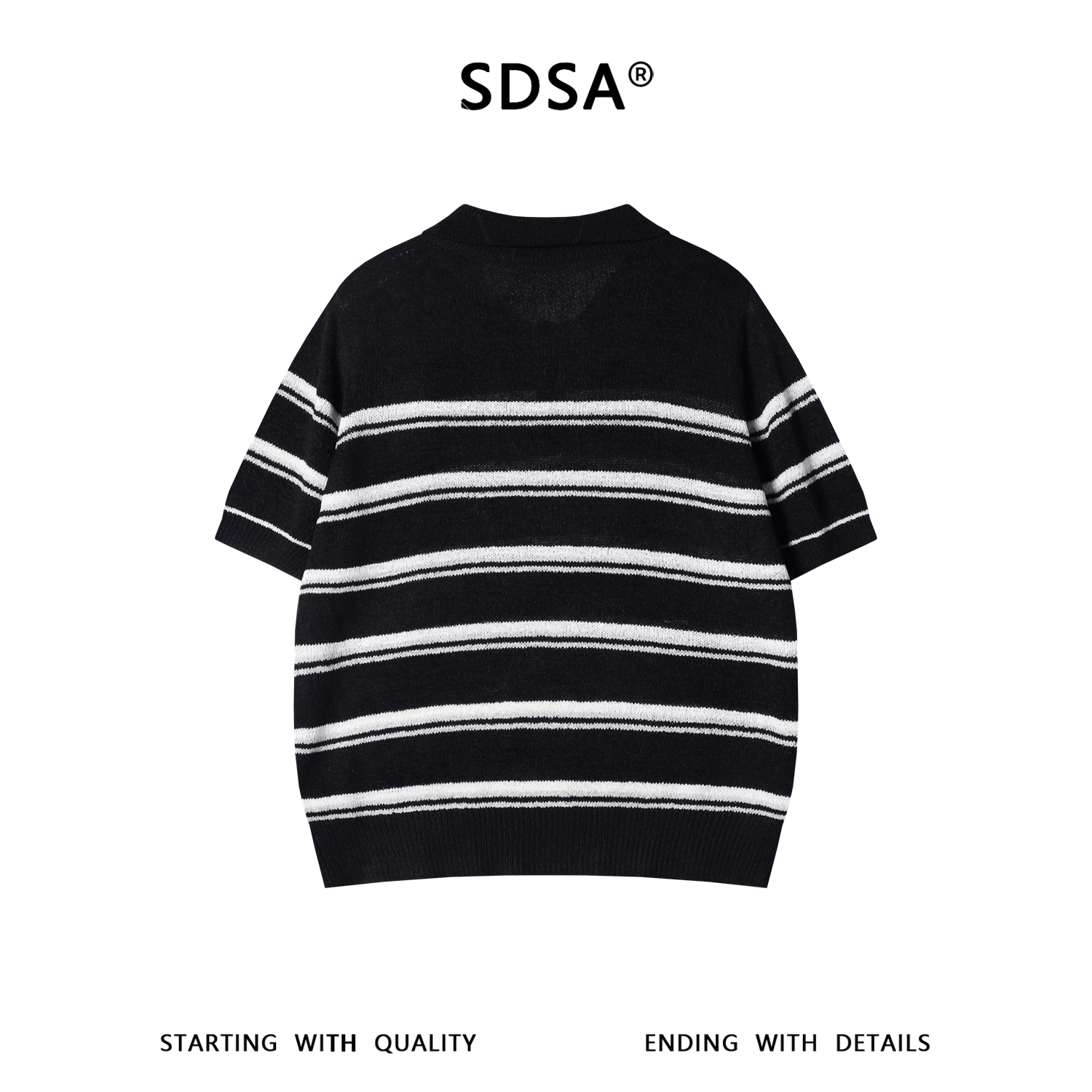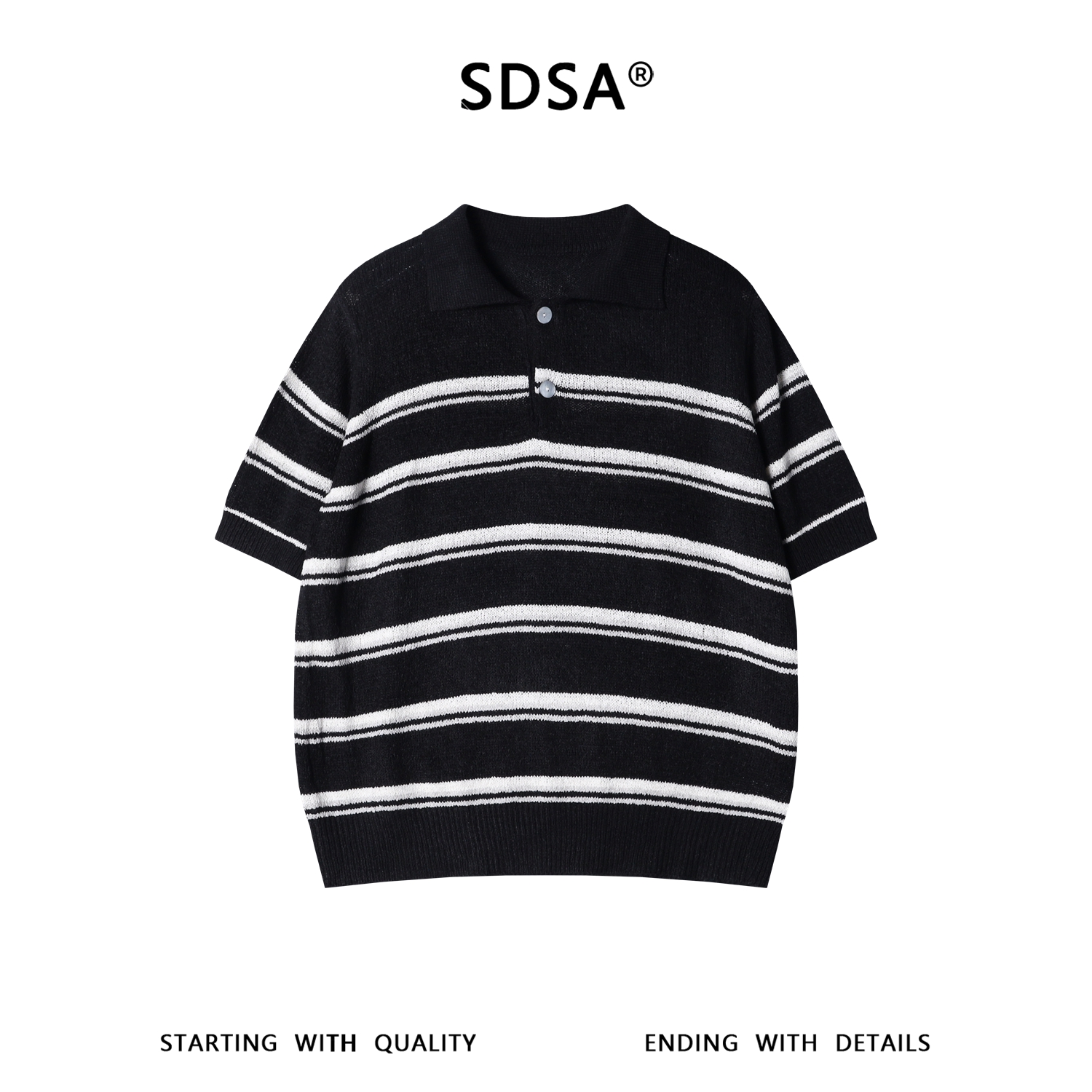 SDSA男装2026新款高贵轻奢慵懒风条纹肌理感针织翻领短袖T恤百搭