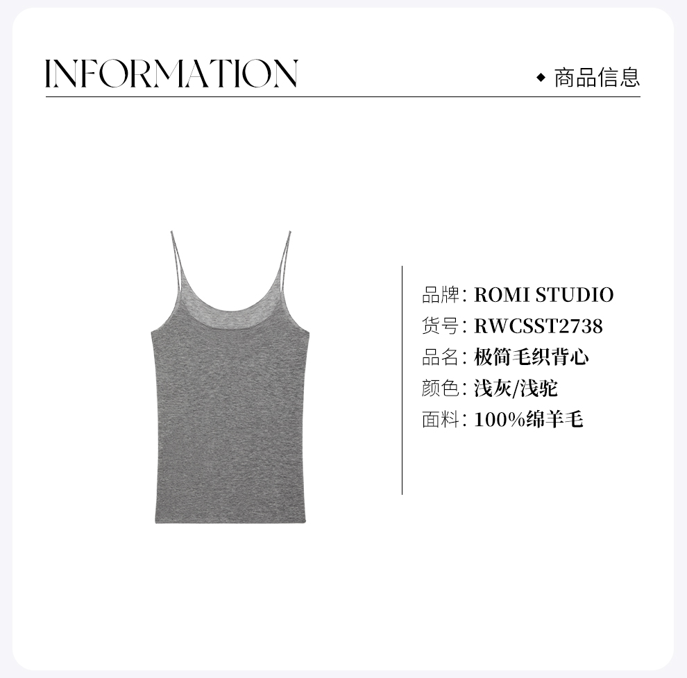 ROMI STUDIO 100%细支水溶羊毛轻薄柔软针织吊带背心 RWCSST2738