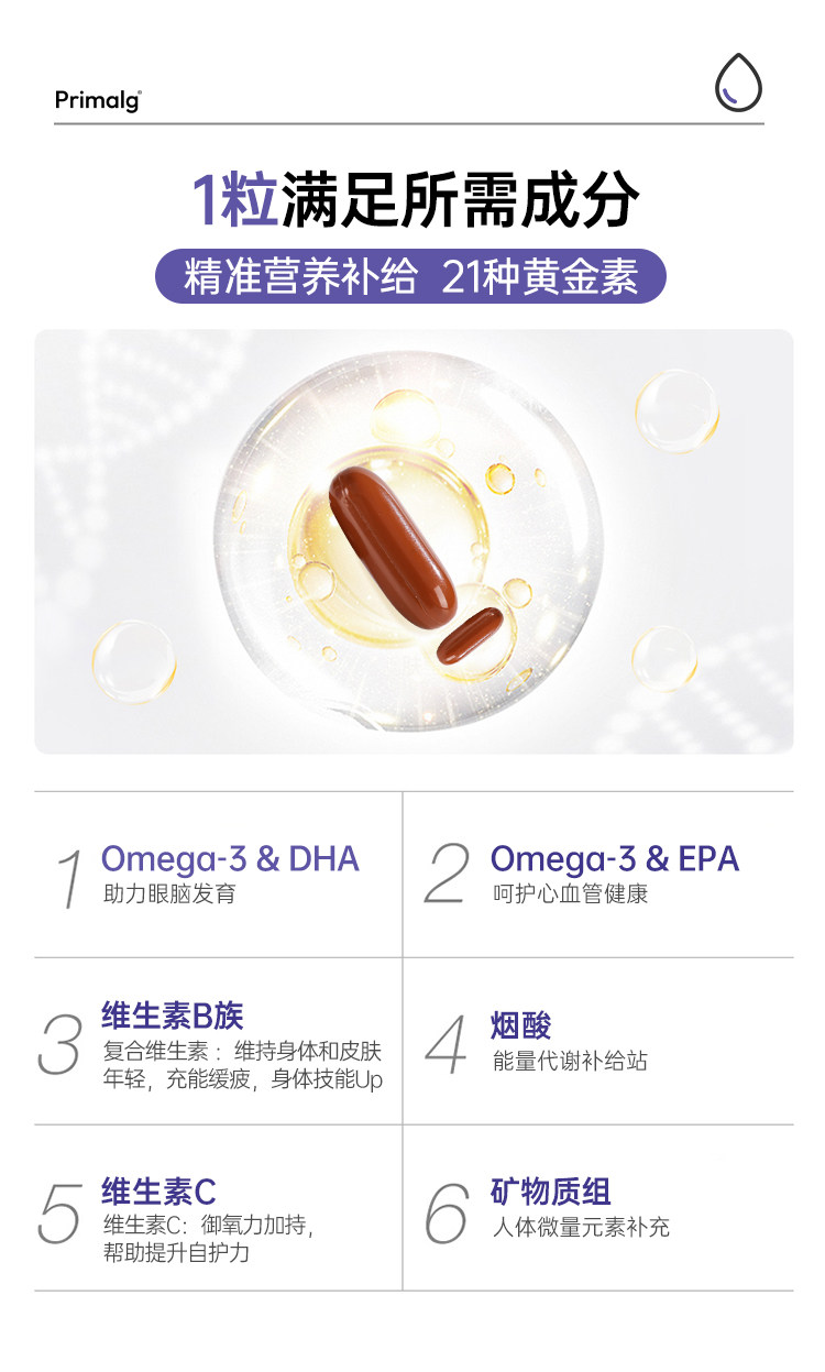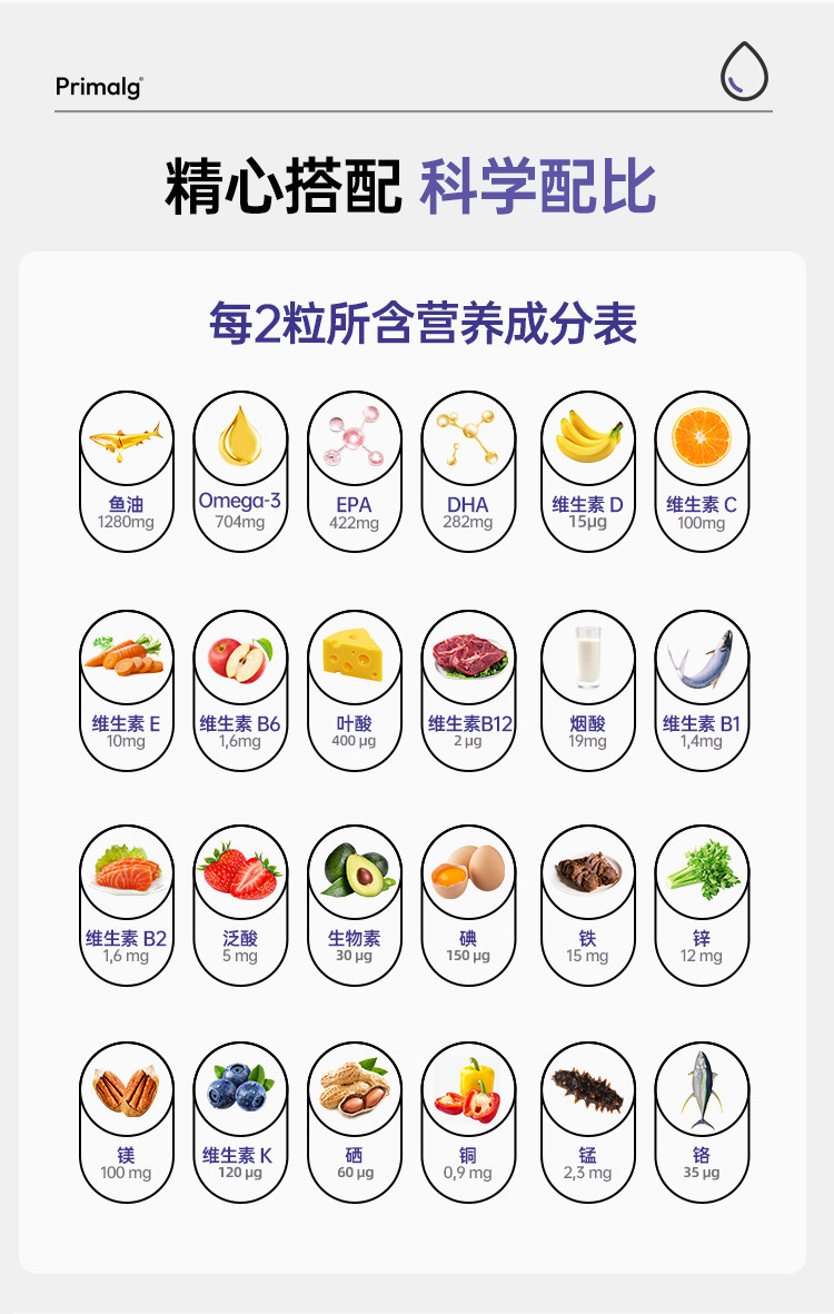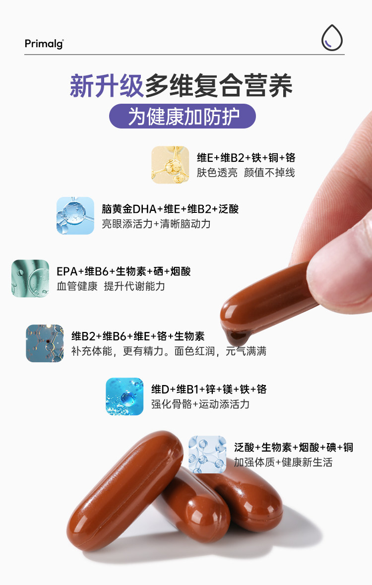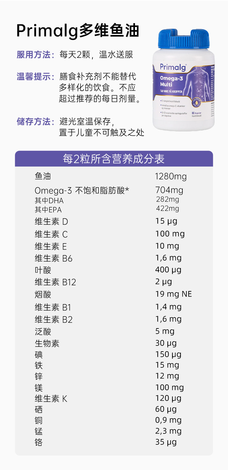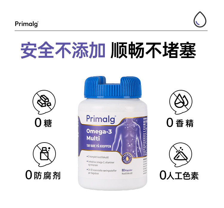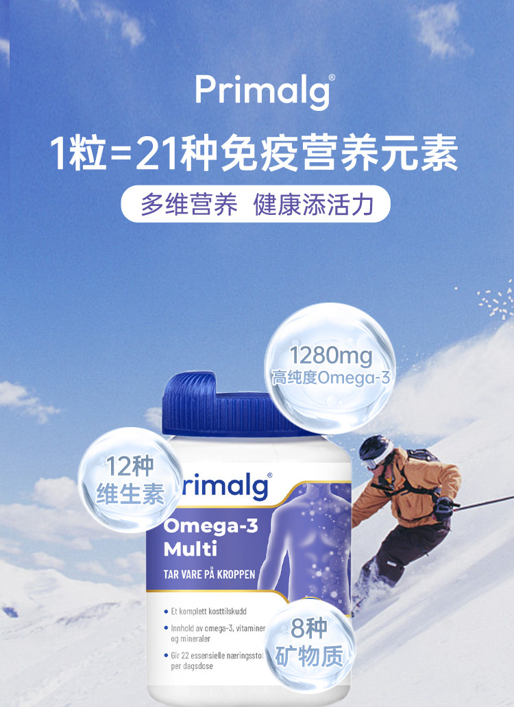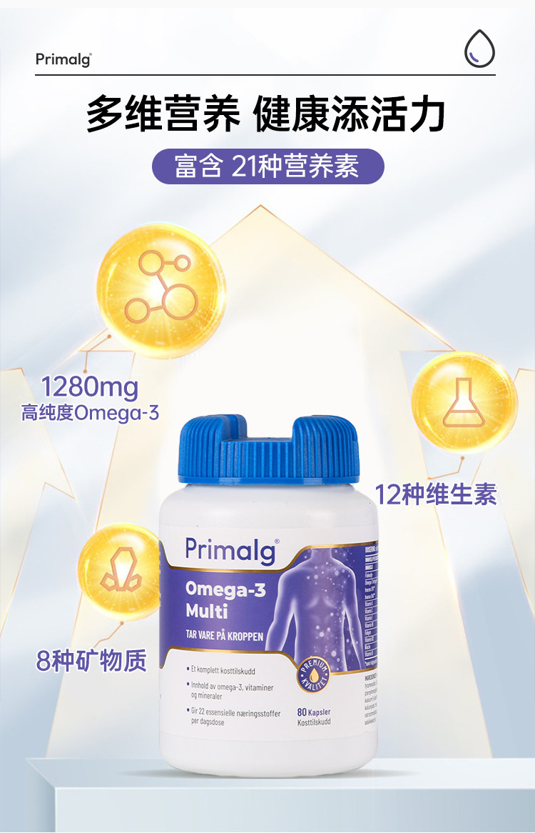 挪威Primalg多维深海鱼油Omega3复合元素铁锌镁B族多种维生素VC