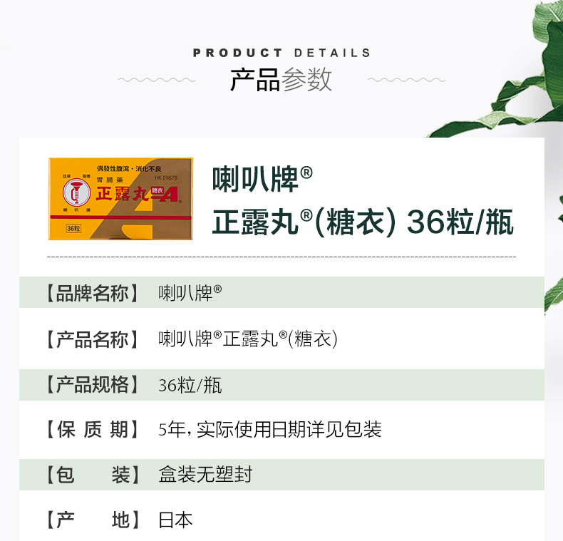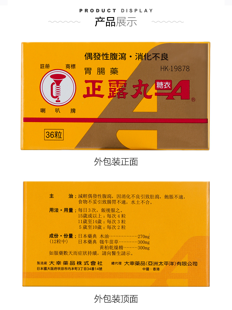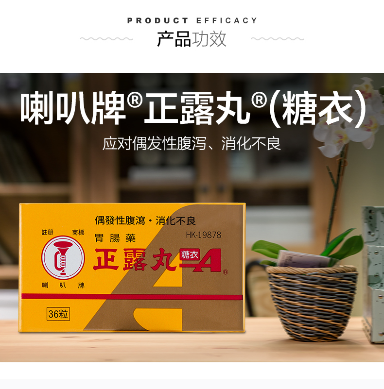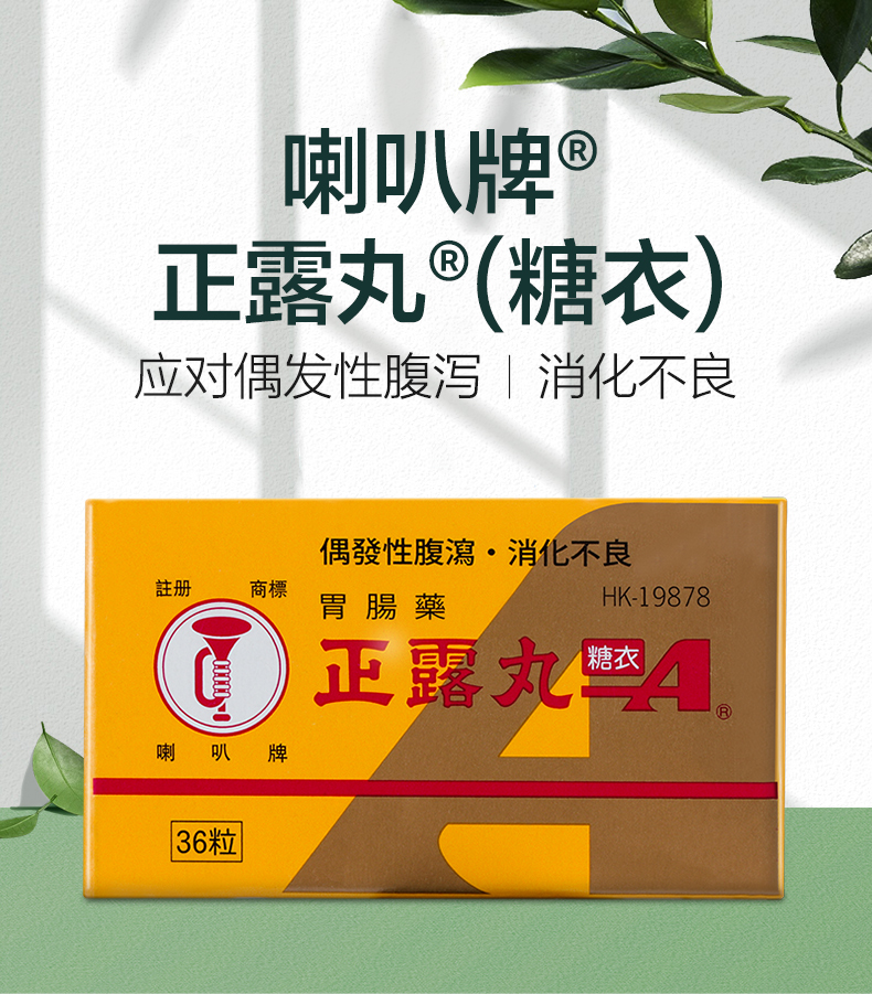 【香港直邮】饮食消化不良腹泻 正品喇叭牌 糖衣装正露丸( 36's)