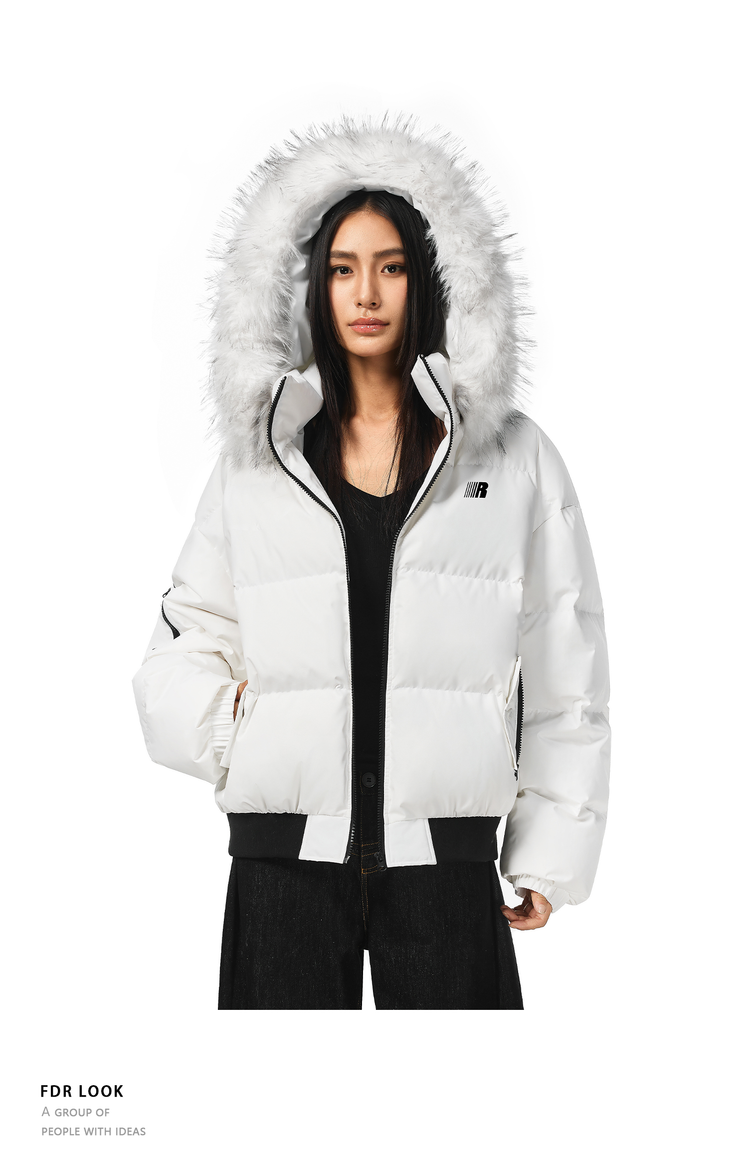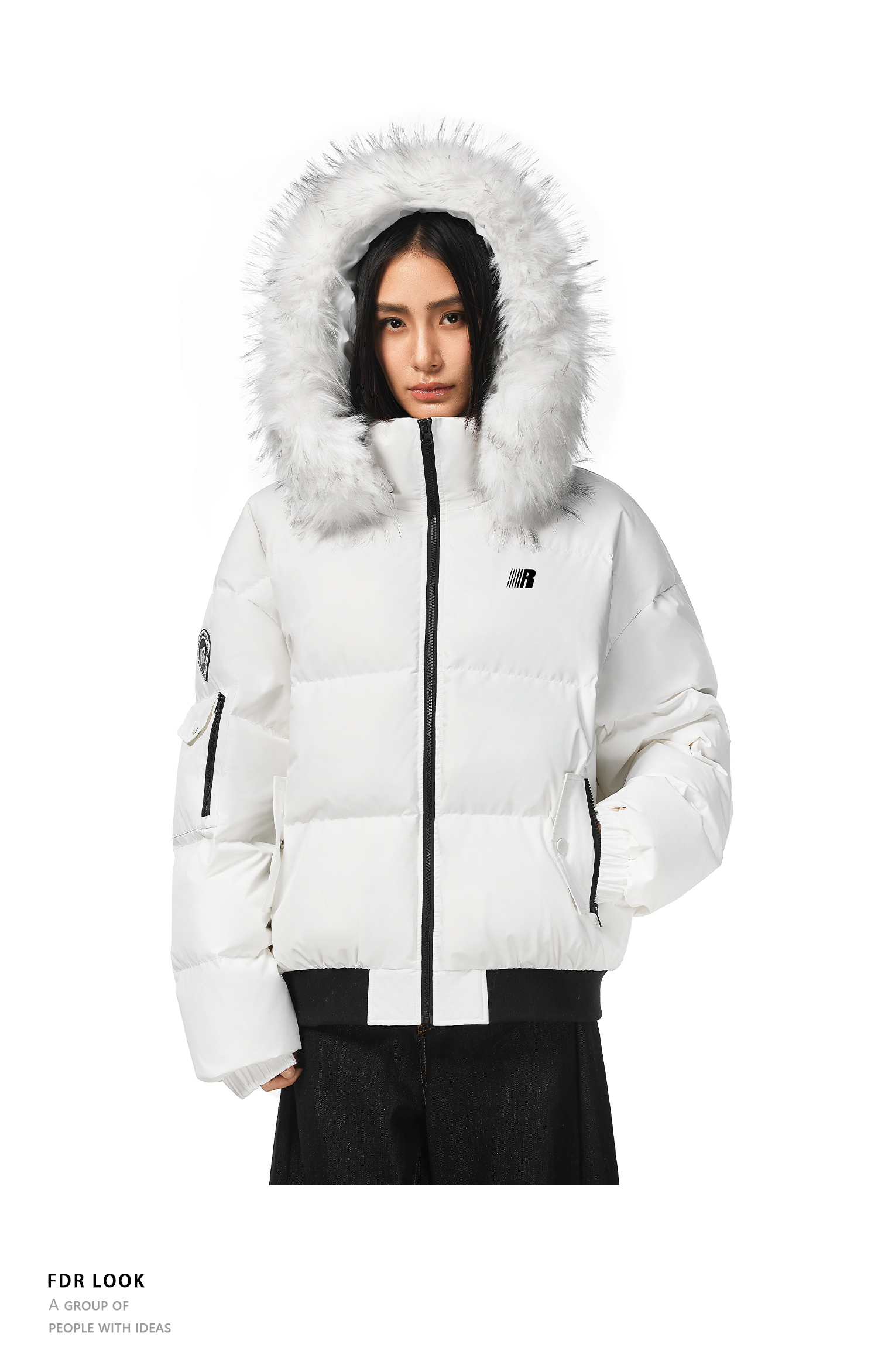 FDR官方店 撞色毛领工装派克服厚外套男款2025新款羽绒服冬季女款