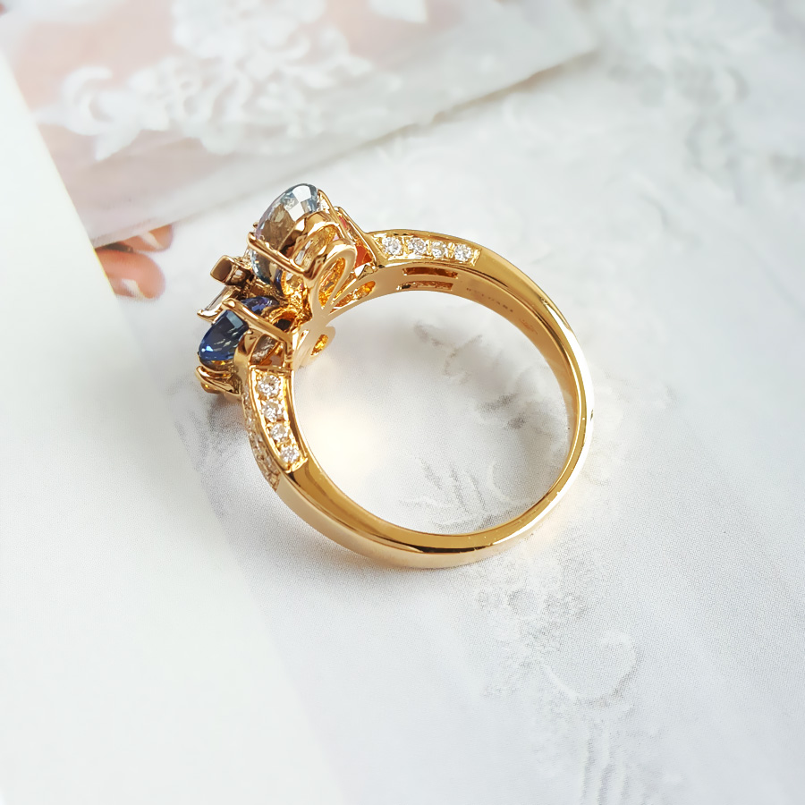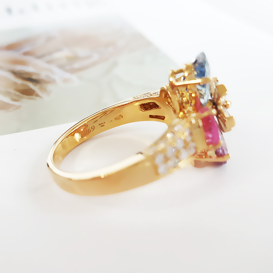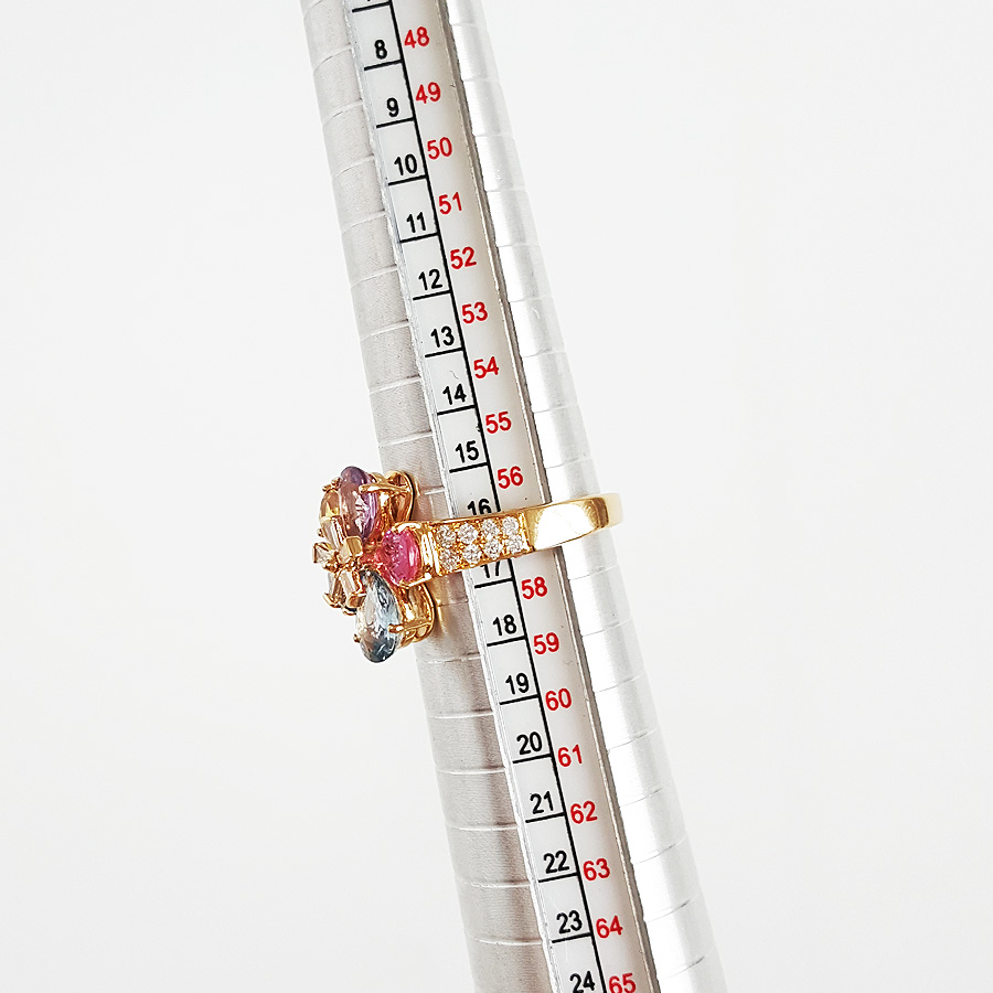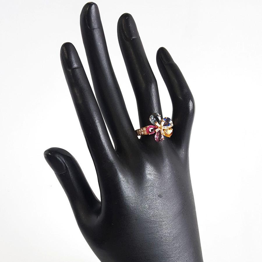 款式 | 18K黄金镶钻彩色蓝宝石花朵戒指 |