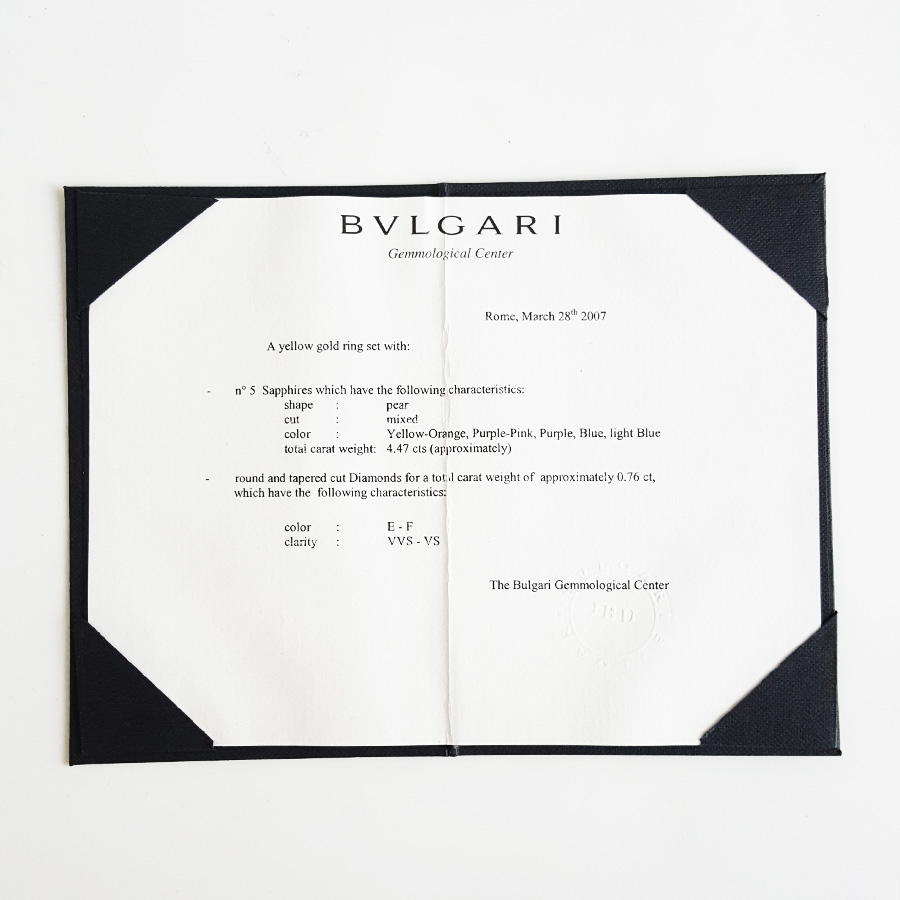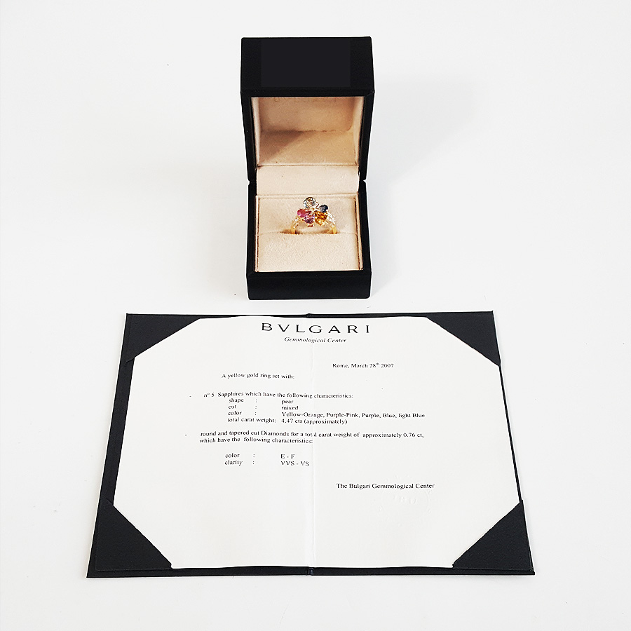 【95新】BVLGARI宝格丽SAPPHIREFLOWER系列18K黄金镶钻彩色蓝宝石花朵戒指女士57号020924TJ23 现售价:35500