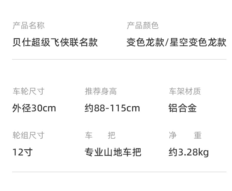 贝仕雷霆儿童平衡车