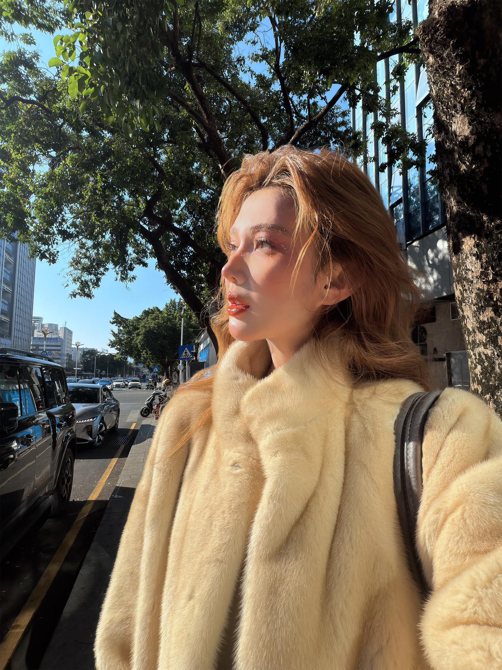 PP41-奶油金棕紫貂皮草大衣好温柔~(JJ)
