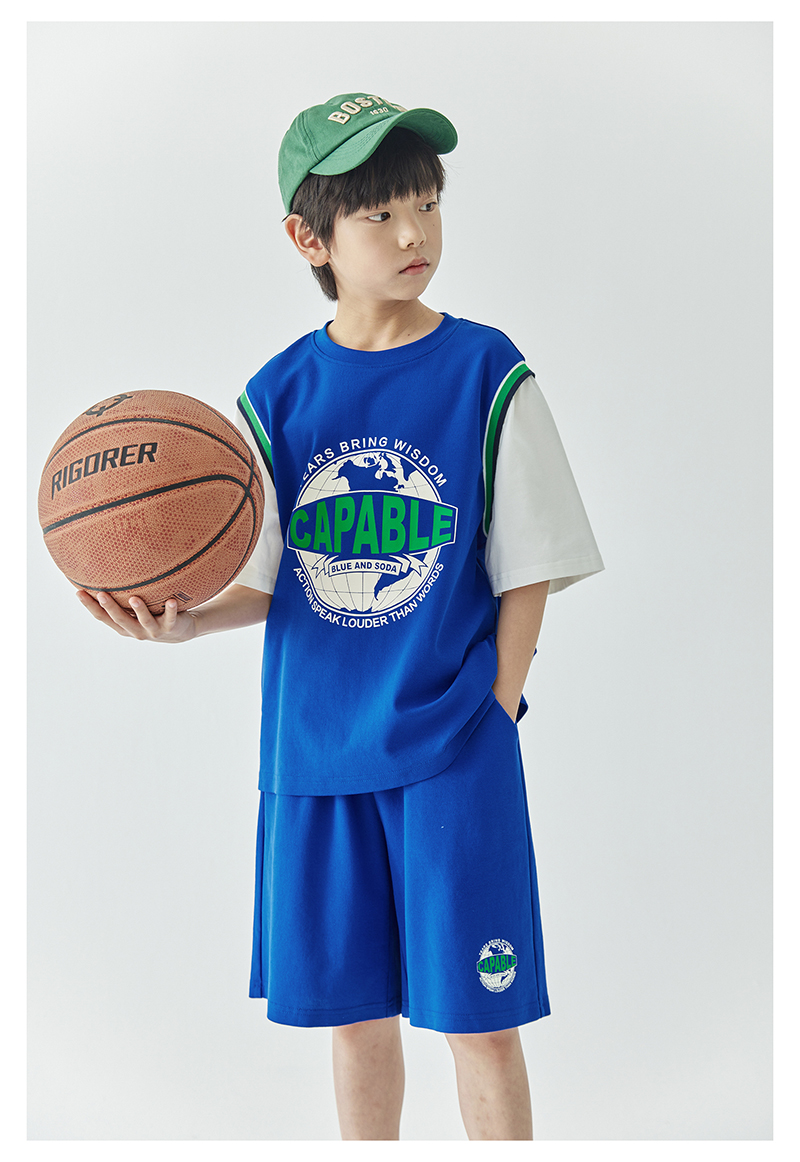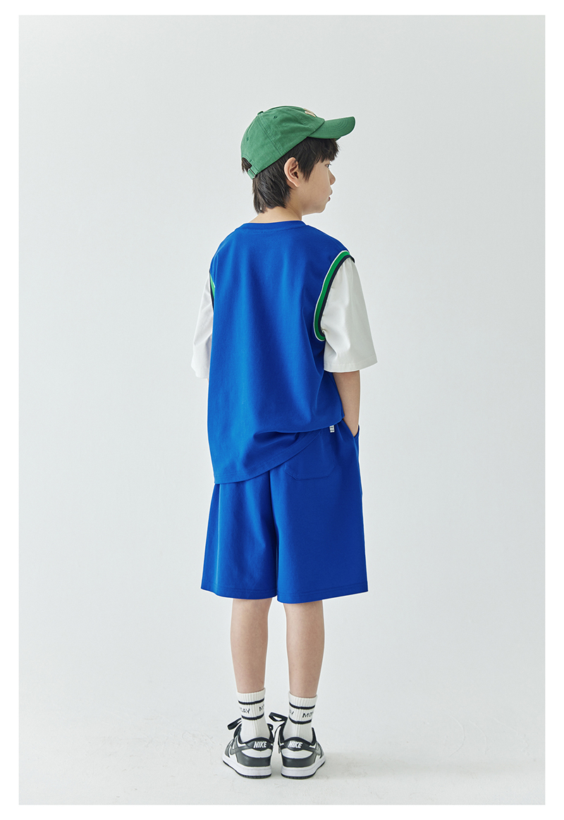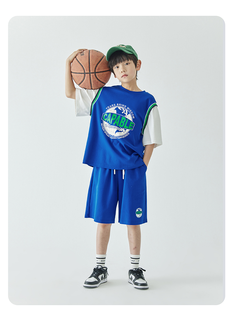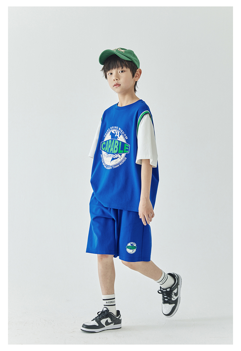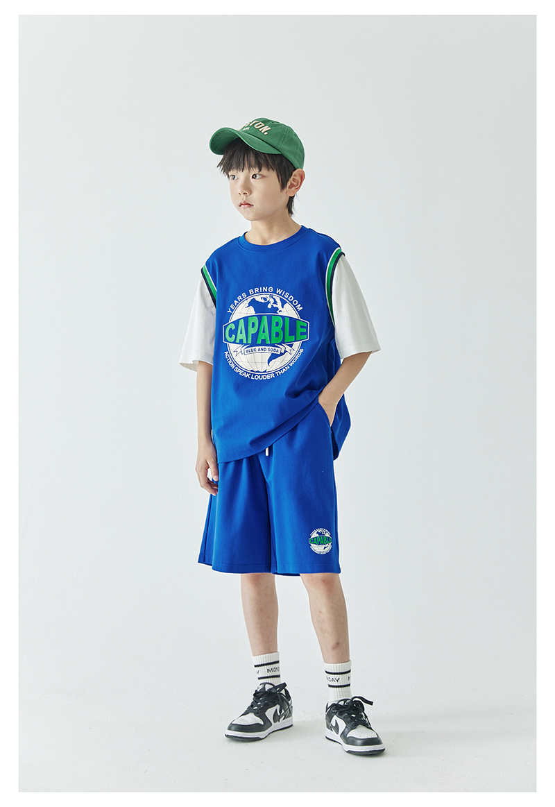 蓝汽水假两件印花t恤844B24431&休闲短裤844B24454