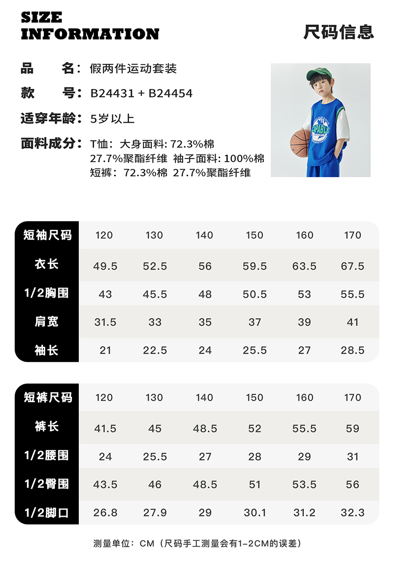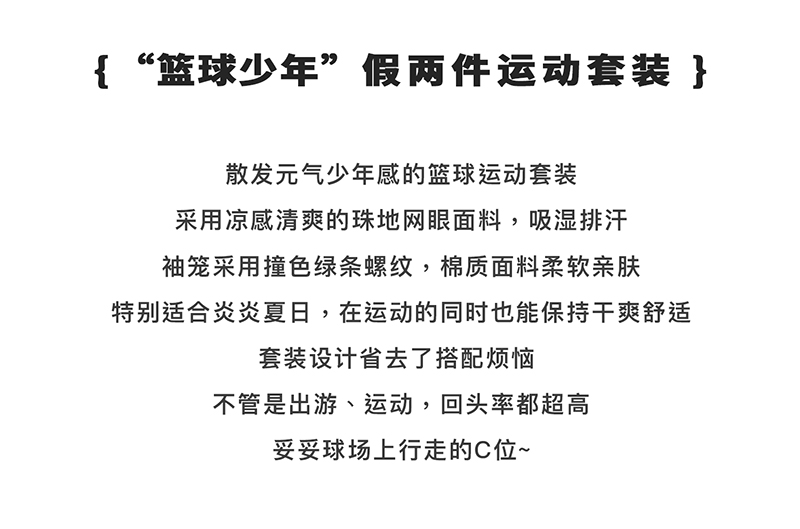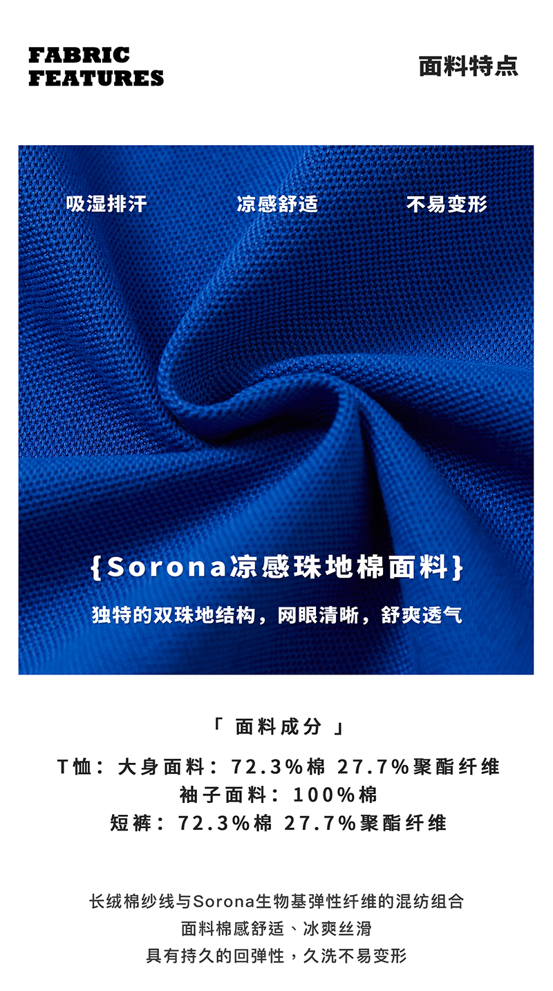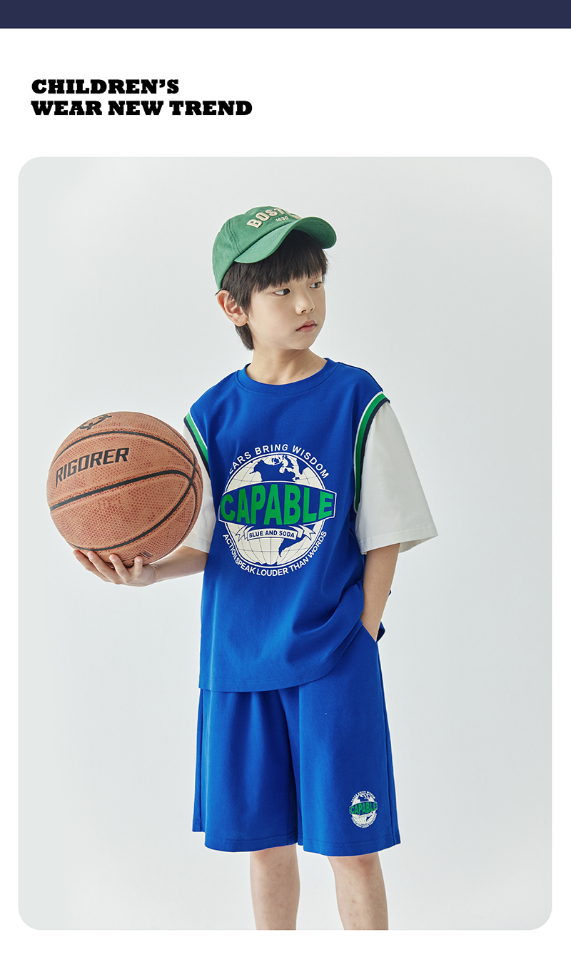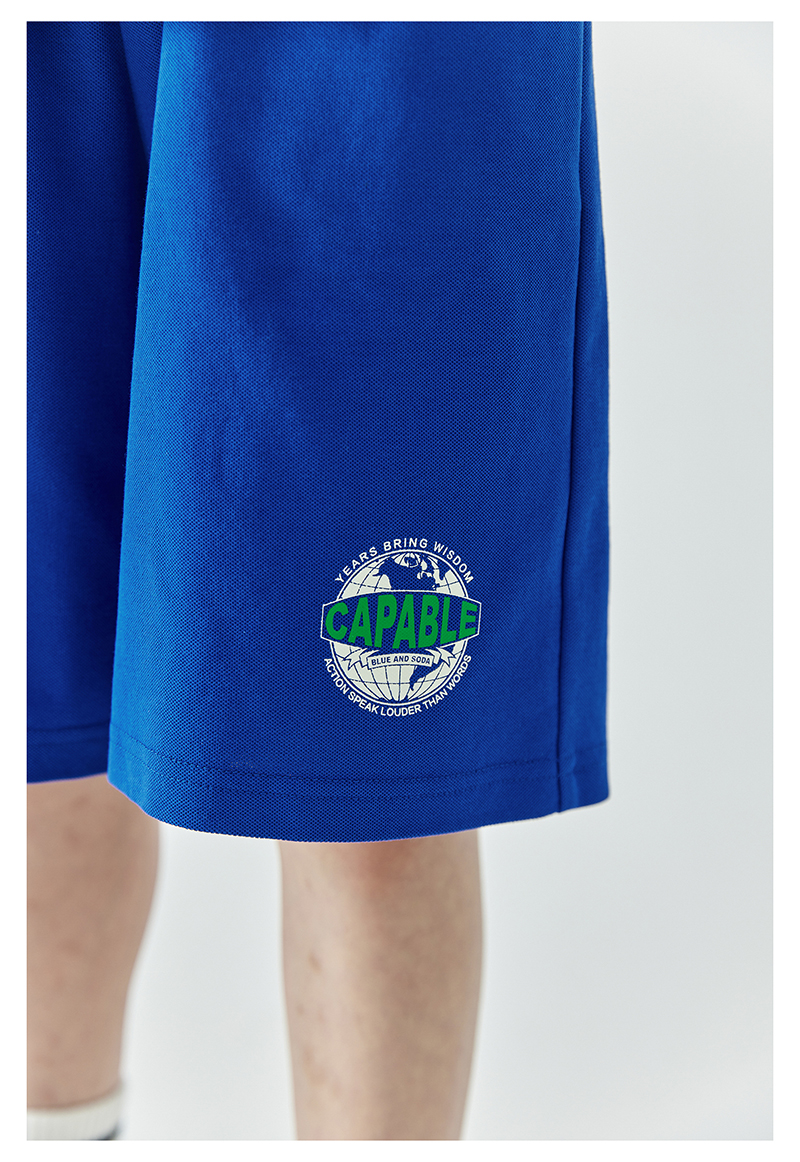 蓝汽水假两件印花t恤844B24431&休闲短裤844B24454