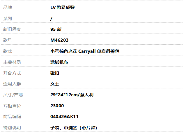 【95新】LV路易威登M46203小号棕色老花Carryall单肩斜挎包女士040426AK11