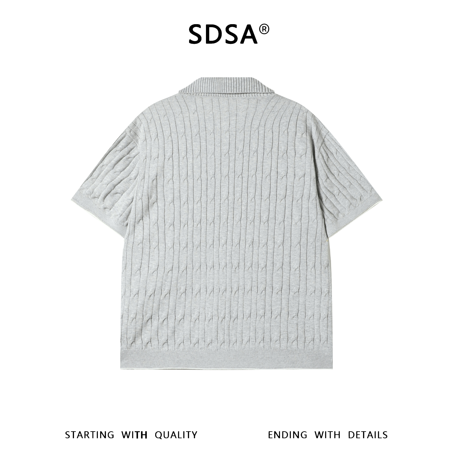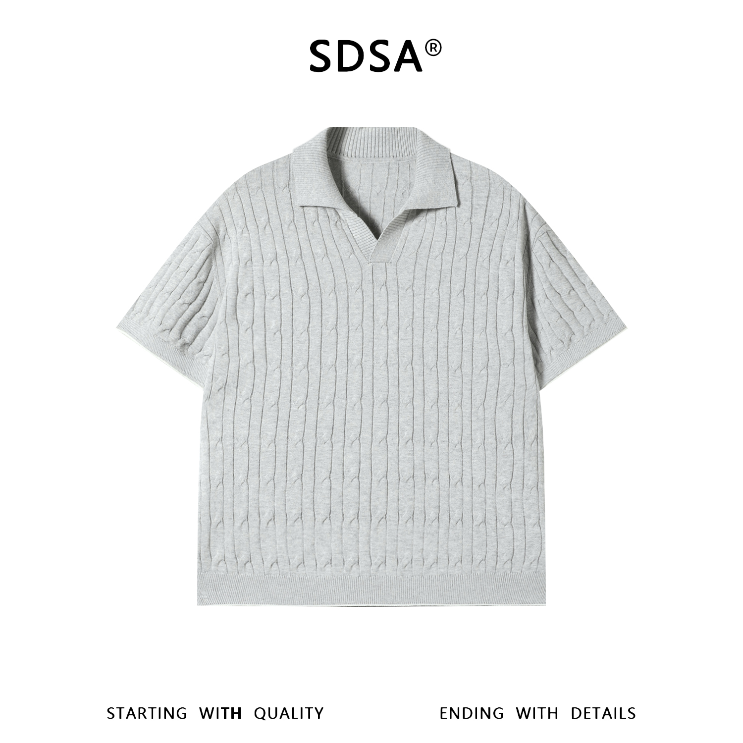 SDSA男装2026新款高贵轻奢老钱风针织纽花海鸥领短袖T恤百搭休闲