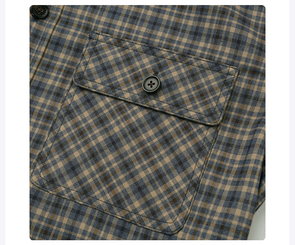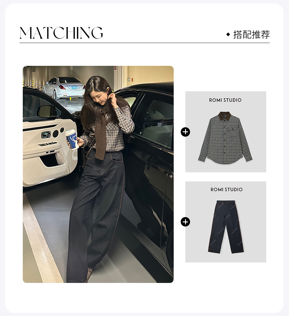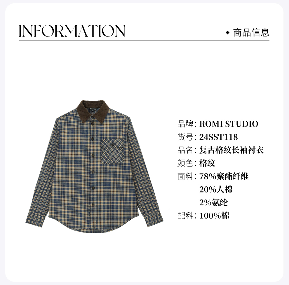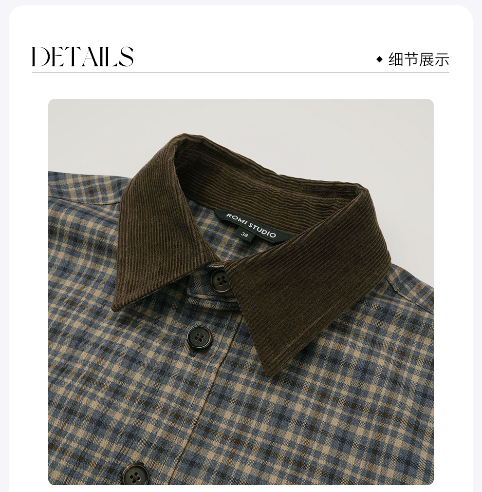 ROMI STUDIO“美式复古”腔调穿搭细格纹拼灯芯绒长袖衬衣24SST118