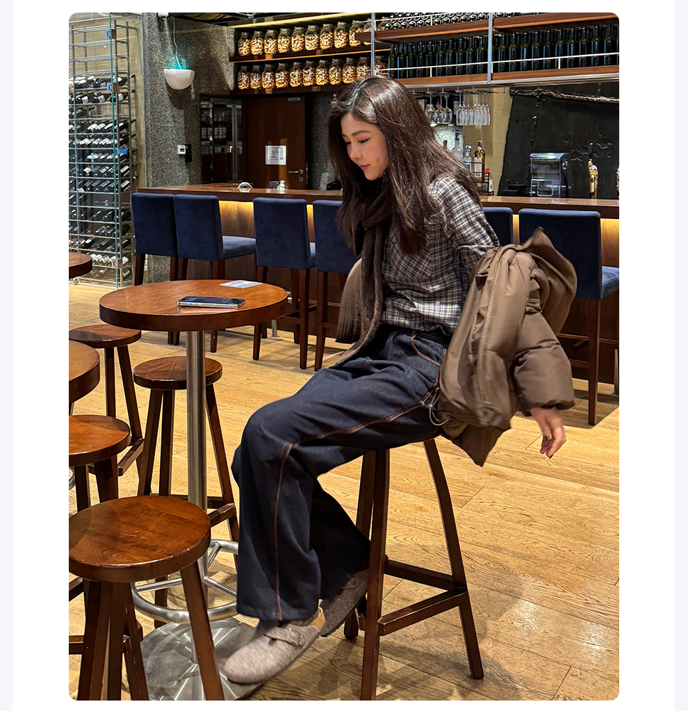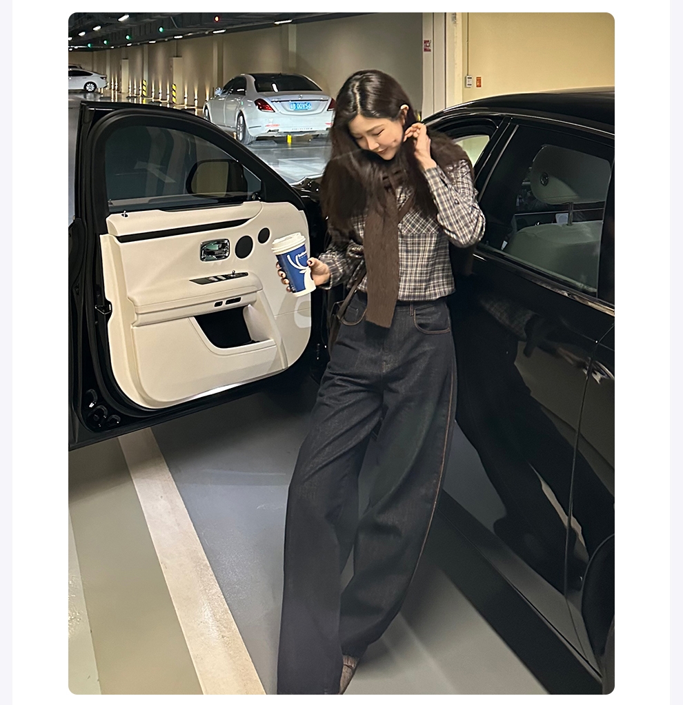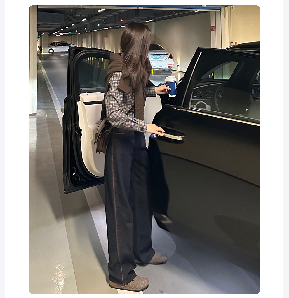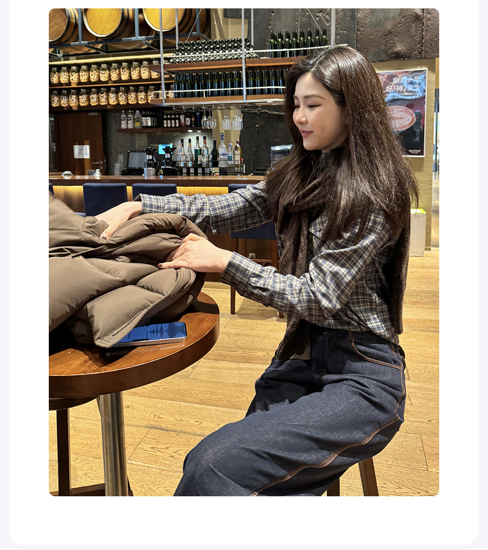 ROMI STUDIO“美式复古”腔调穿搭细格纹拼灯芯绒长袖衬衣24SST118