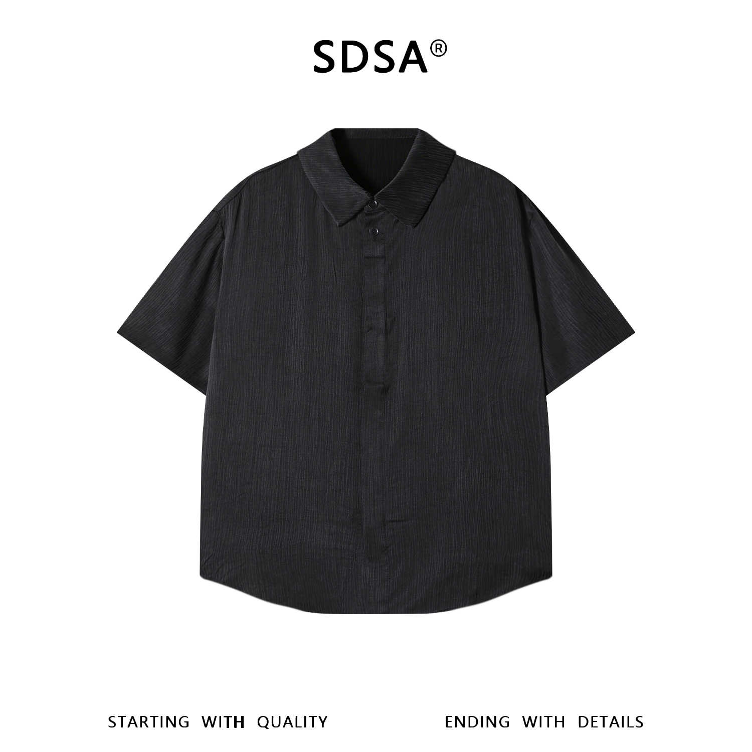 SDSA男装2026新款高贵轻奢设计感竖纹肌理翻领短袖衬衫百搭上衣