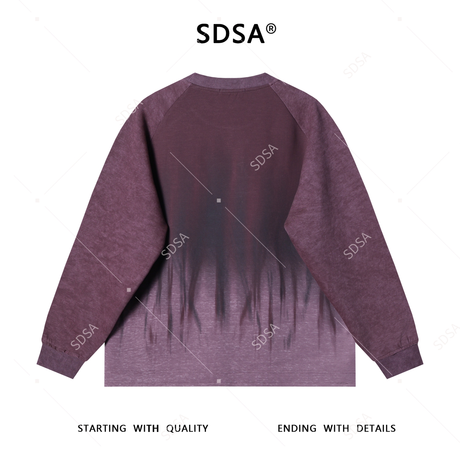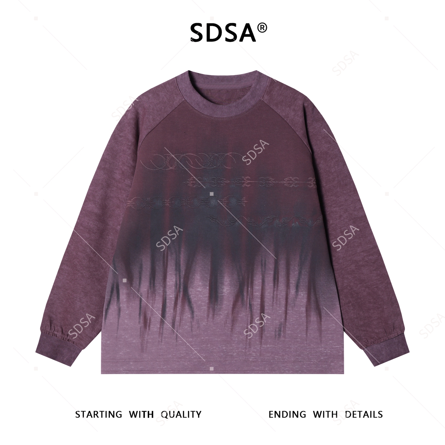 SDSA男士秋冬新款痞帅男装潮牌渐变刺绣图案圆领卫衣百搭复古上衣