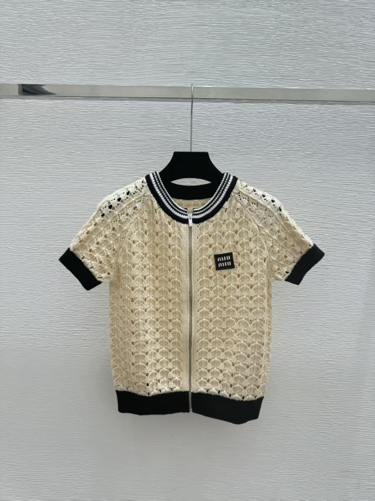【此款只换码不退】Miu Miu 镂空针织拉链开衫(MM)