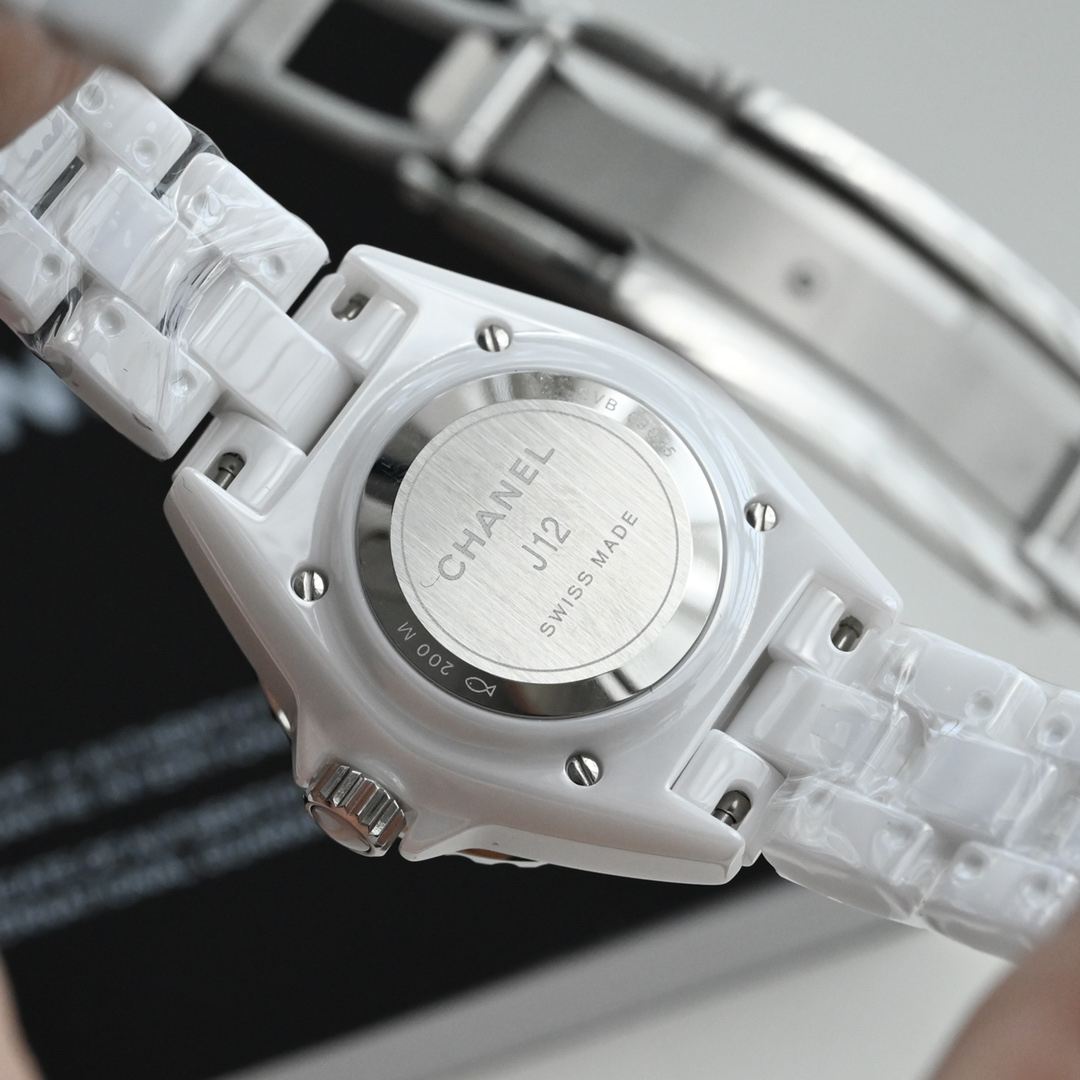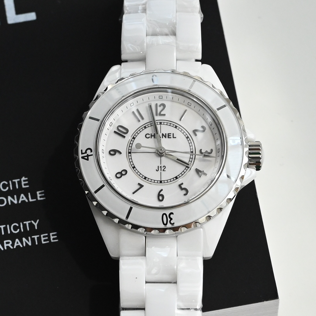 Chanel 作为最有代表性的腕表之一!这几年J12的势头真的是越来越火,买表最重要的就是腕表的颜值,天天都要戴的一块表如果不好看那可不行显然J12是很多人心目中的高颜值腕表~简洁的表盘设计赋予了J12浓浓的高级感,由黑白两色打造的,白色J12简洁纯粹黑色J12则更酷更能彰显个性,第一只J12面世的时候一经推出便大获成功,被国际媒体誉为“21世纪腕表的新经典”甚至影响了整个制表业的设计美学…进口瑞士原装同型号机芯(零故障)真钻原装机芯,高科技精密陶瓷搭配精钢旋入式表冠,蓝宝石玻璃镜面表盘天然贝母,不同光线角度下可以呈现不一样的美感,三重折叠式精钢表扣防水200米~陶瓷材质的腕表质感非常漂亮,超多顶级腕表品牌的陶瓷款价格非常坚挺,比真金材质更稀有、更保值~表径:33MM