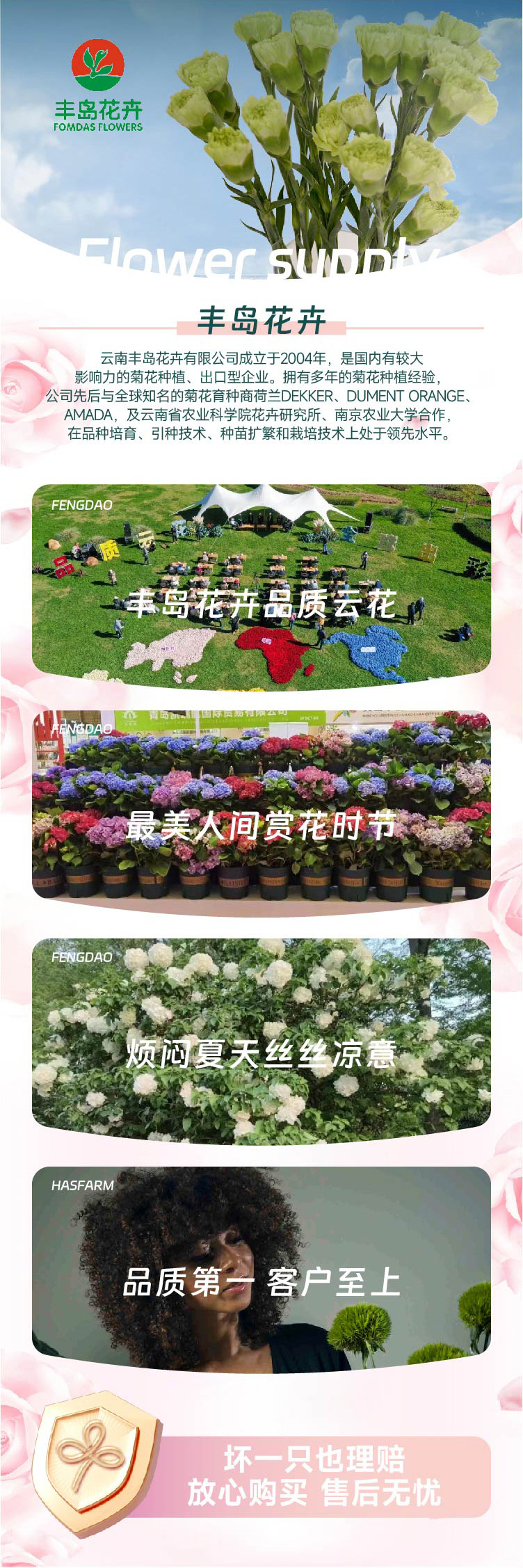 - 花链无界—致力于供应高品质的温室品牌鲜花,不断加大与知名品牌的合作,并继续加大在优化供应链和用户体验改善上的投入,为客户提供持续完善的品牌鲜花采购体验。