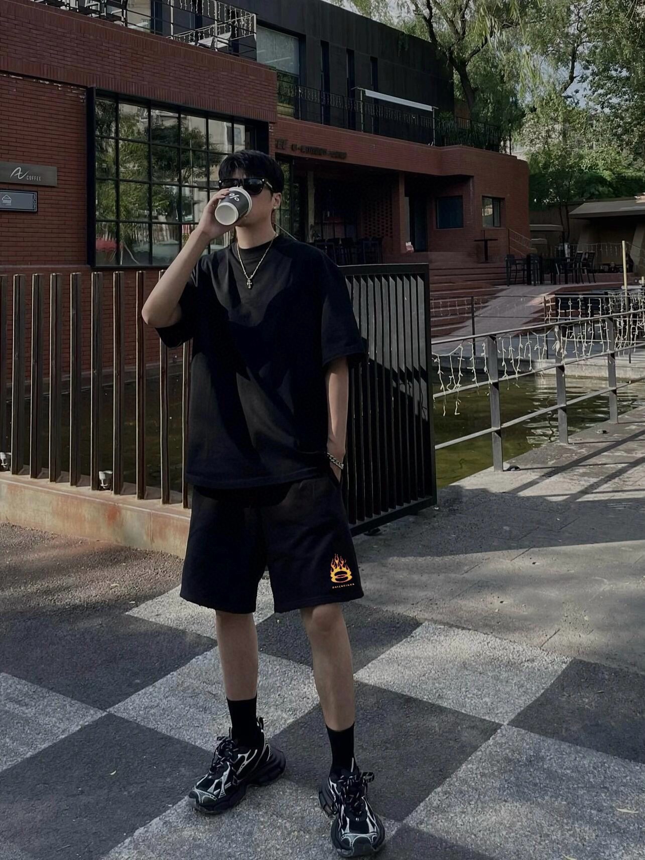 B家 火焰环印花运动短裤(JN)