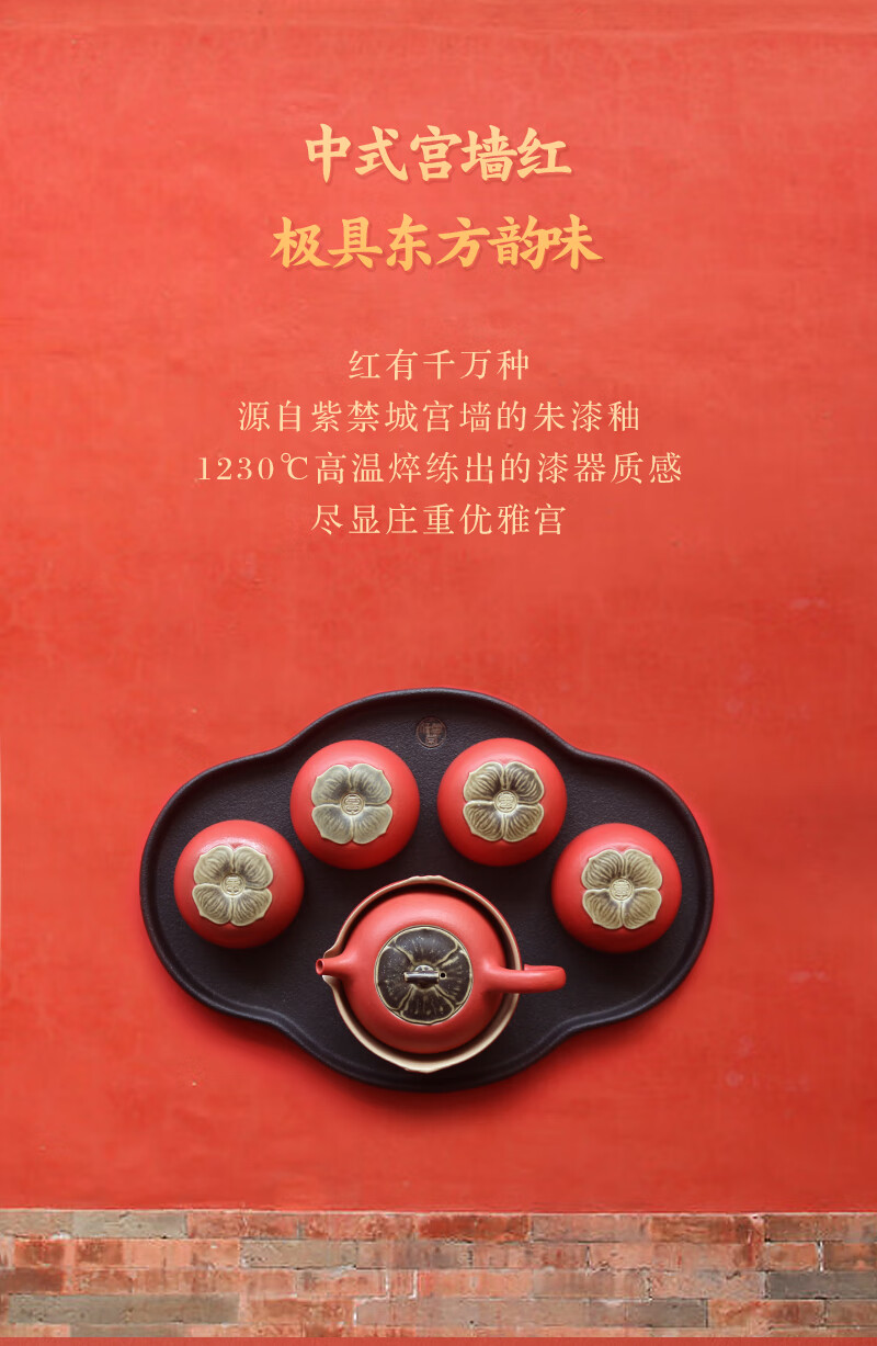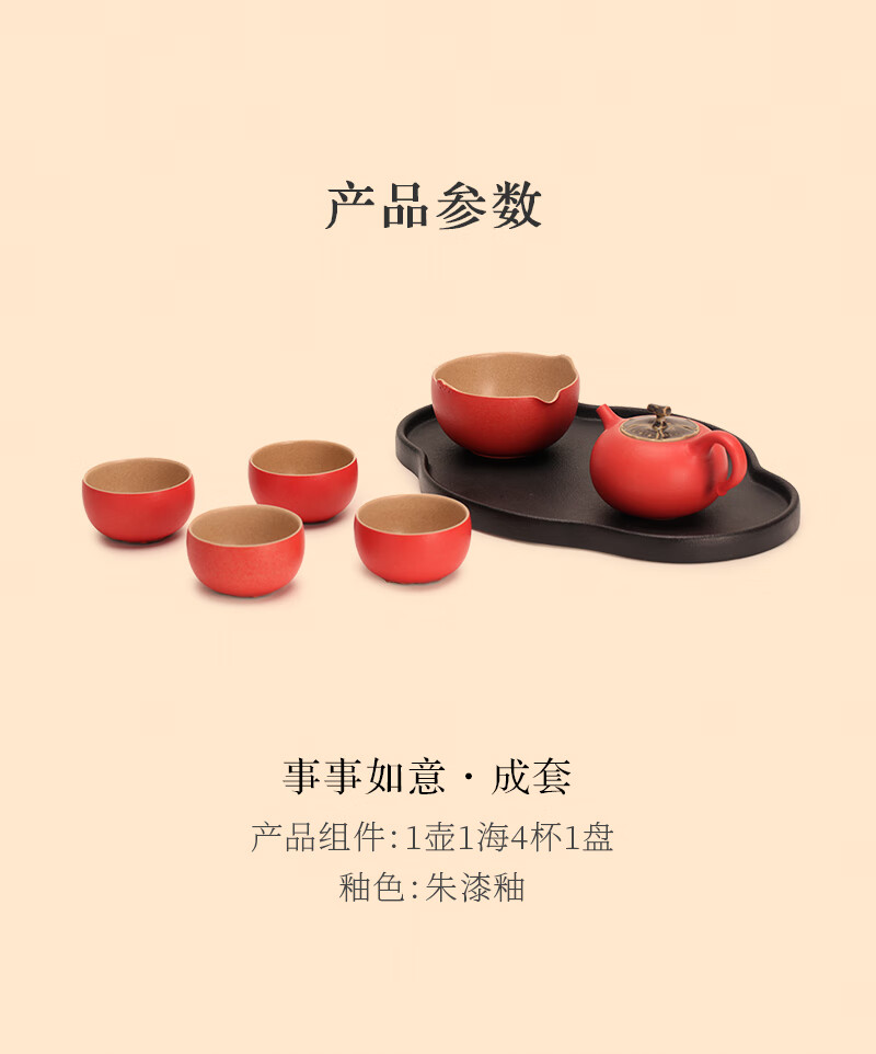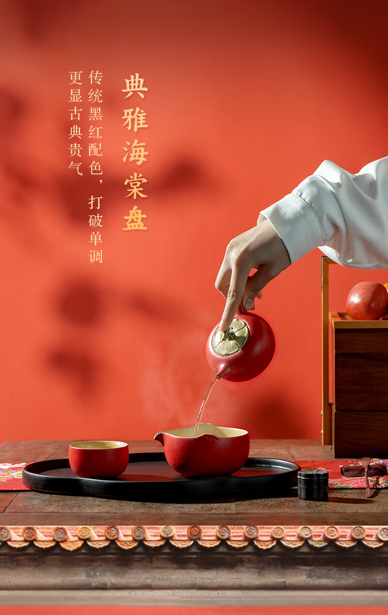 万仟堂(Edenus)茶具高档 功夫茶具套装 陶瓷水果茶具柿子茶壶茶盘茶杯 事事如意