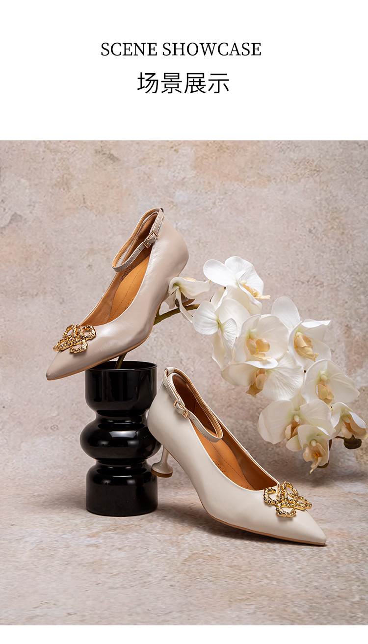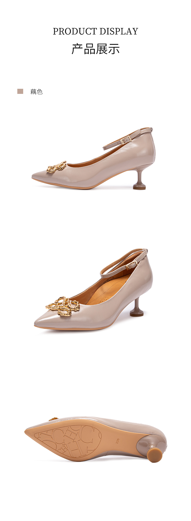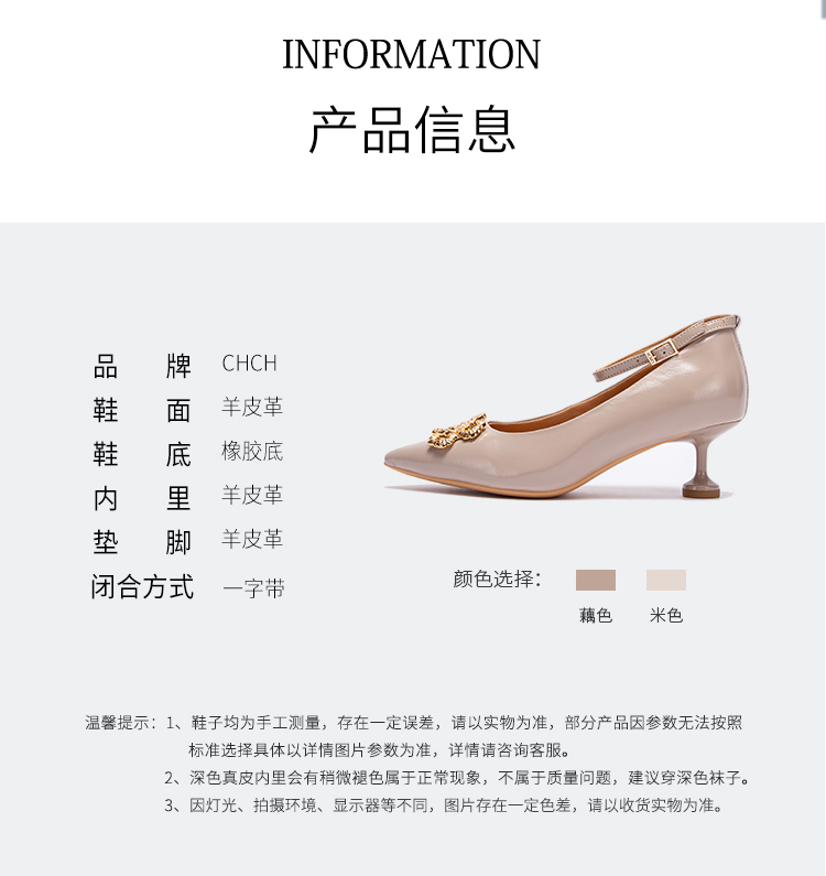 CHCH平衡鞋2025夏季新品细跟羊皮一字带女高跟鞋CP1B5103