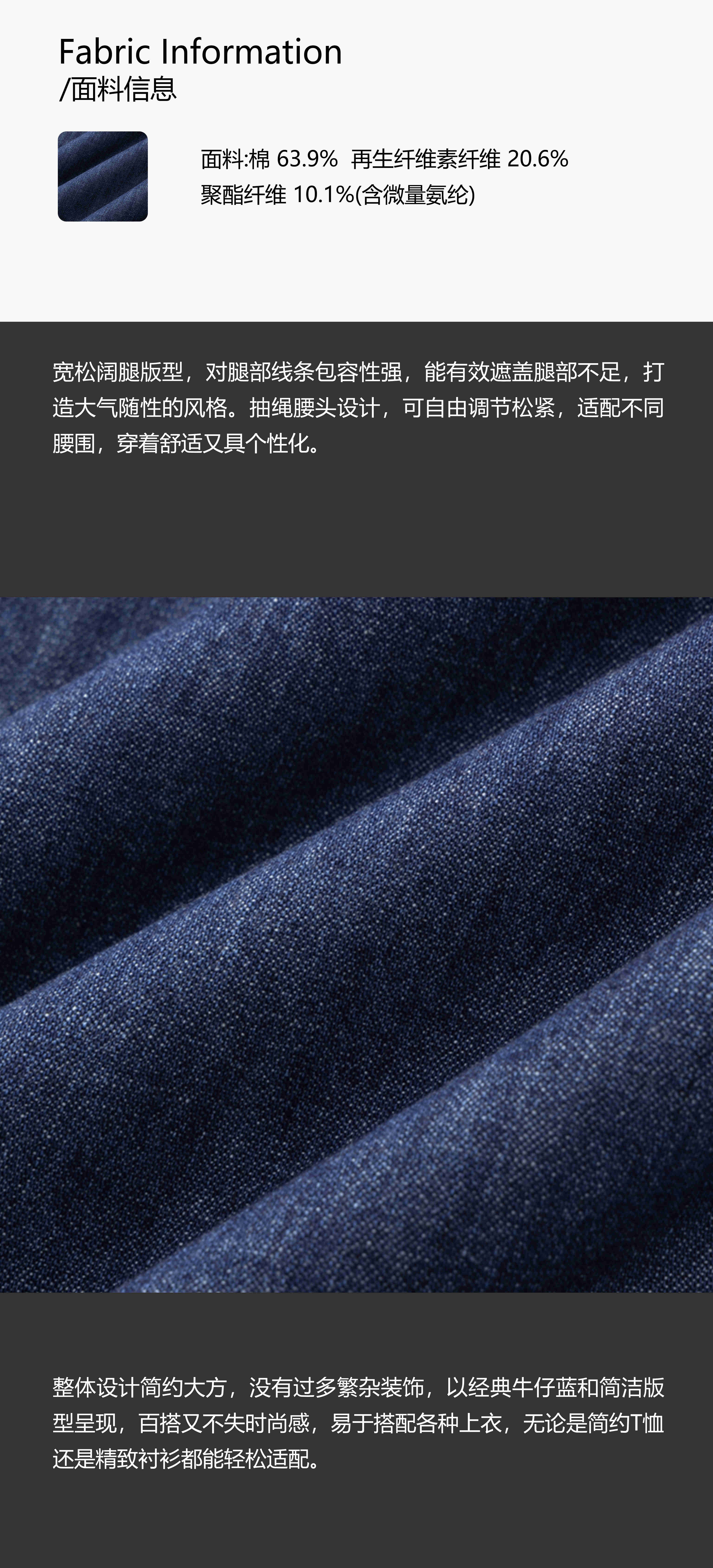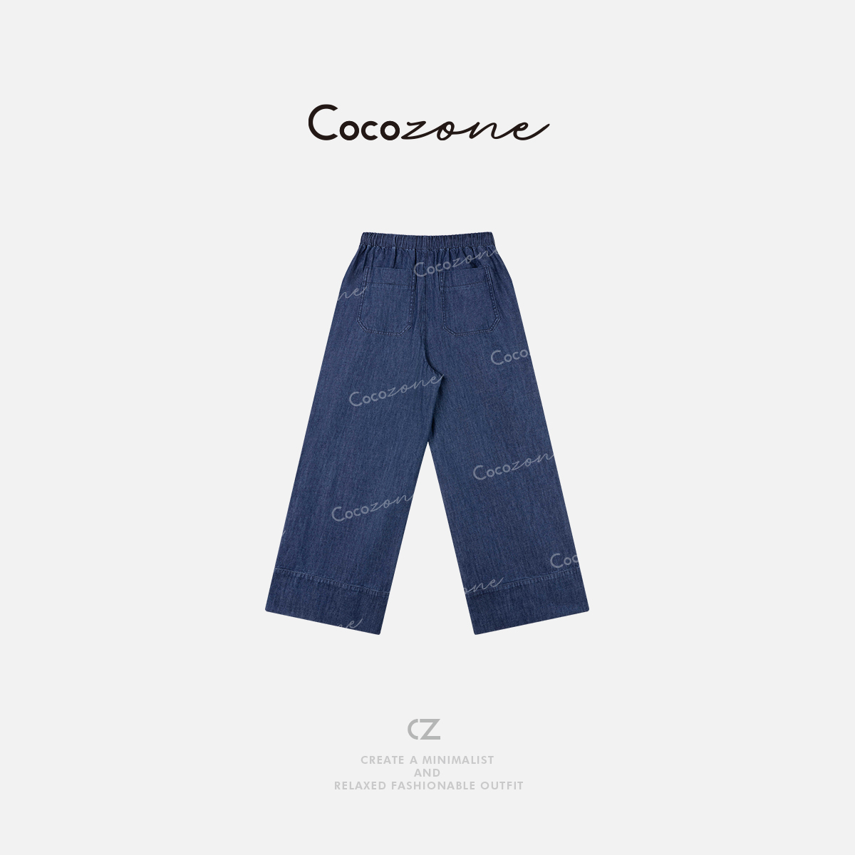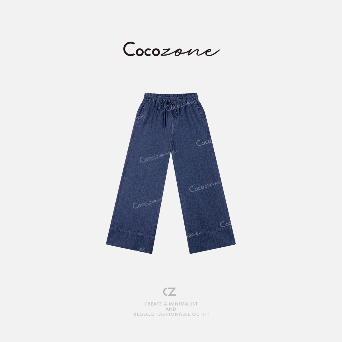 COCO ZONE刘一一 松紧腰系带直筒纯色水洗女高腰牛仔裤ACD2A0388