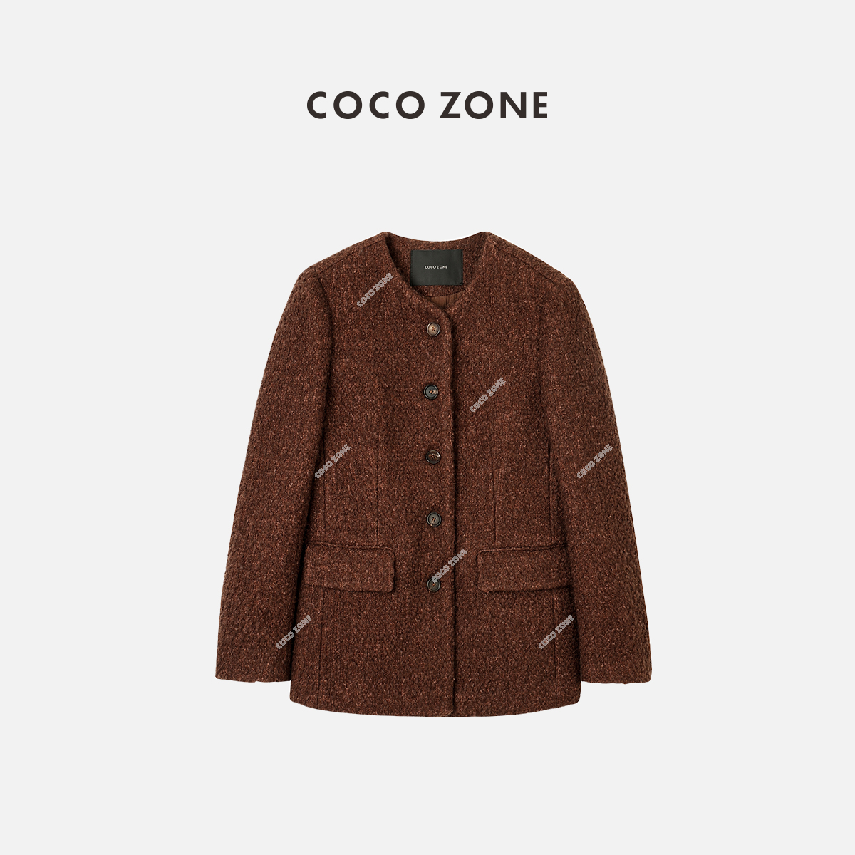 COCO ZONE美拉德法式香风扣雅致小V领长袖外套23C19577