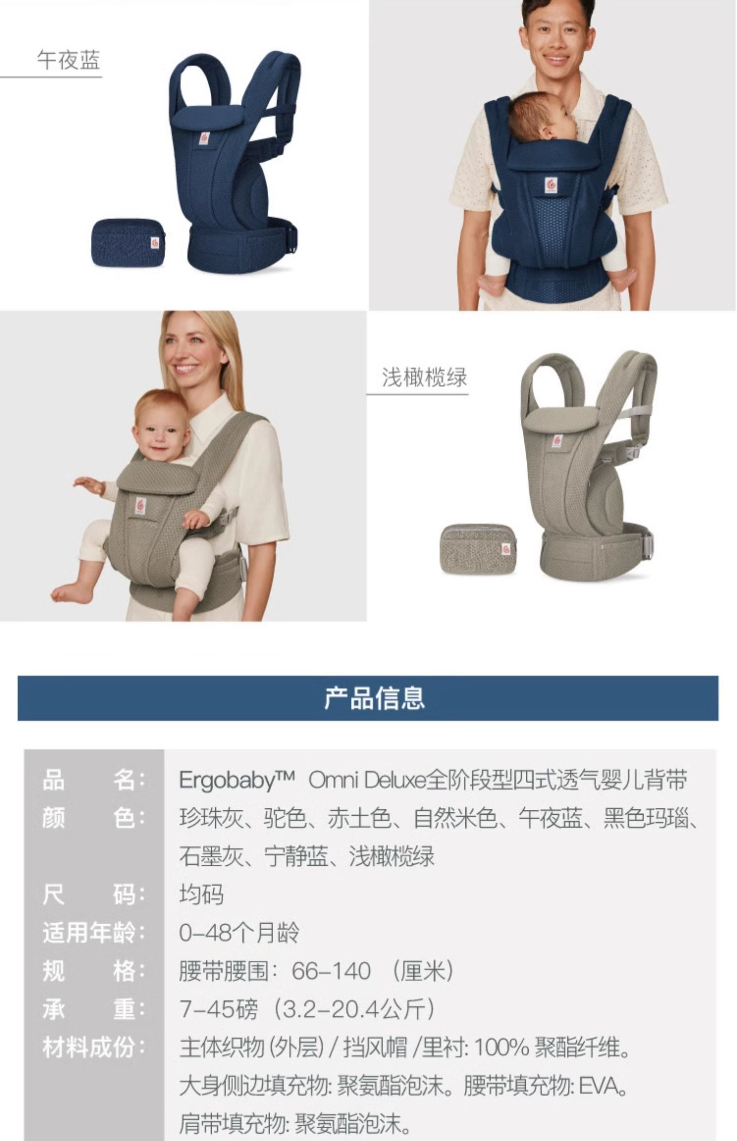 [新品首发]ergobaby婴儿背带二狗Deluxe宝宝抱娃神器超透气抱带