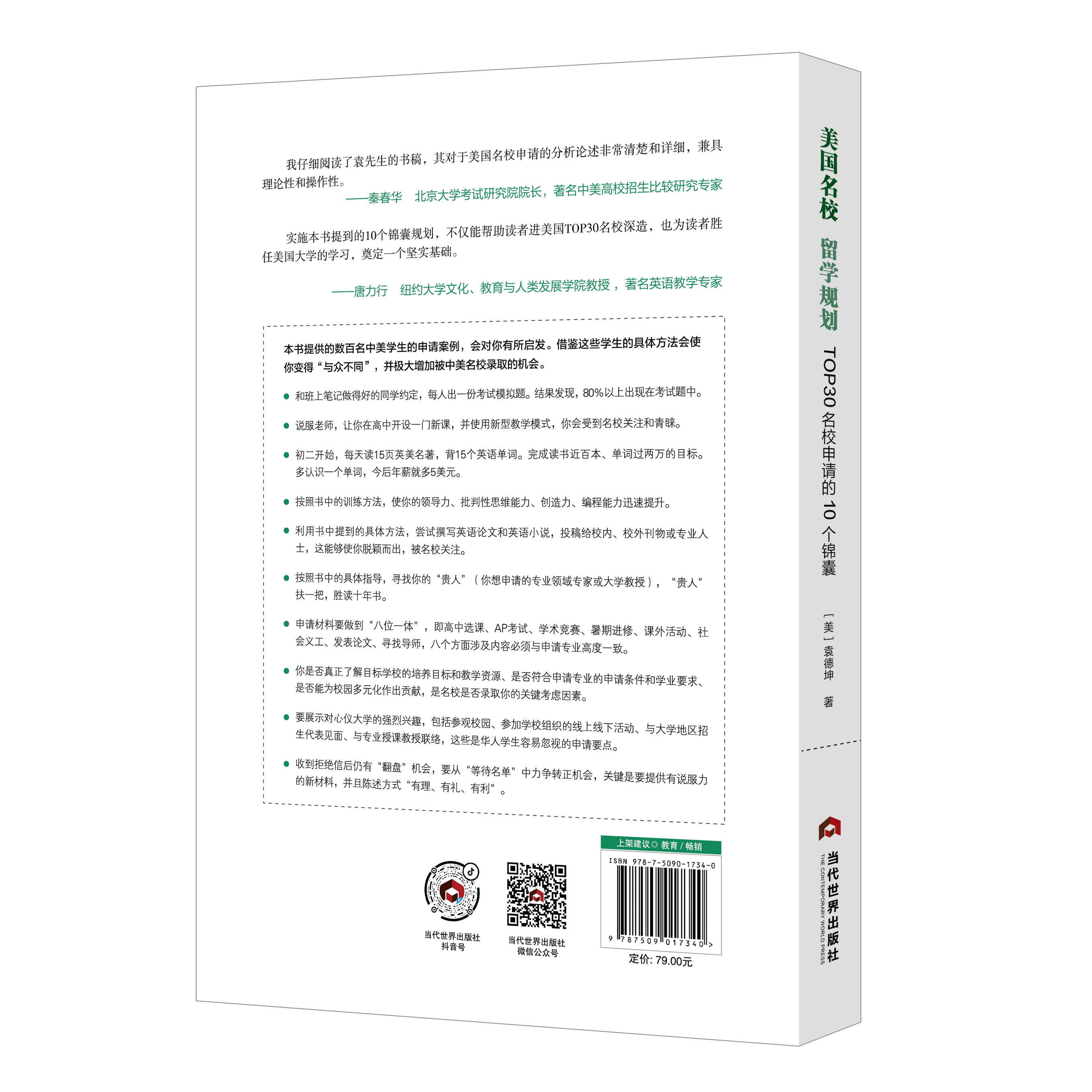 本书分为十章,通过分析美国常春藤盟校和顶尖名校的招生标准,为计划申请美国名校的优秀中美高中学生制定了以提前布局、个性化、科学化为主要特征的高效升学规划。这个规划中包含10个“锦囊”,即有助于学生进行学习生涯规划的10个具体方法,包括确定专业、选课、时间管理、课业成绩、体育锻炼、课外活动、综合能力等方面。作者认为,根据本书内容进行实践,不但能帮助读者申请到美国著名院校,更有助于学生自主成才。