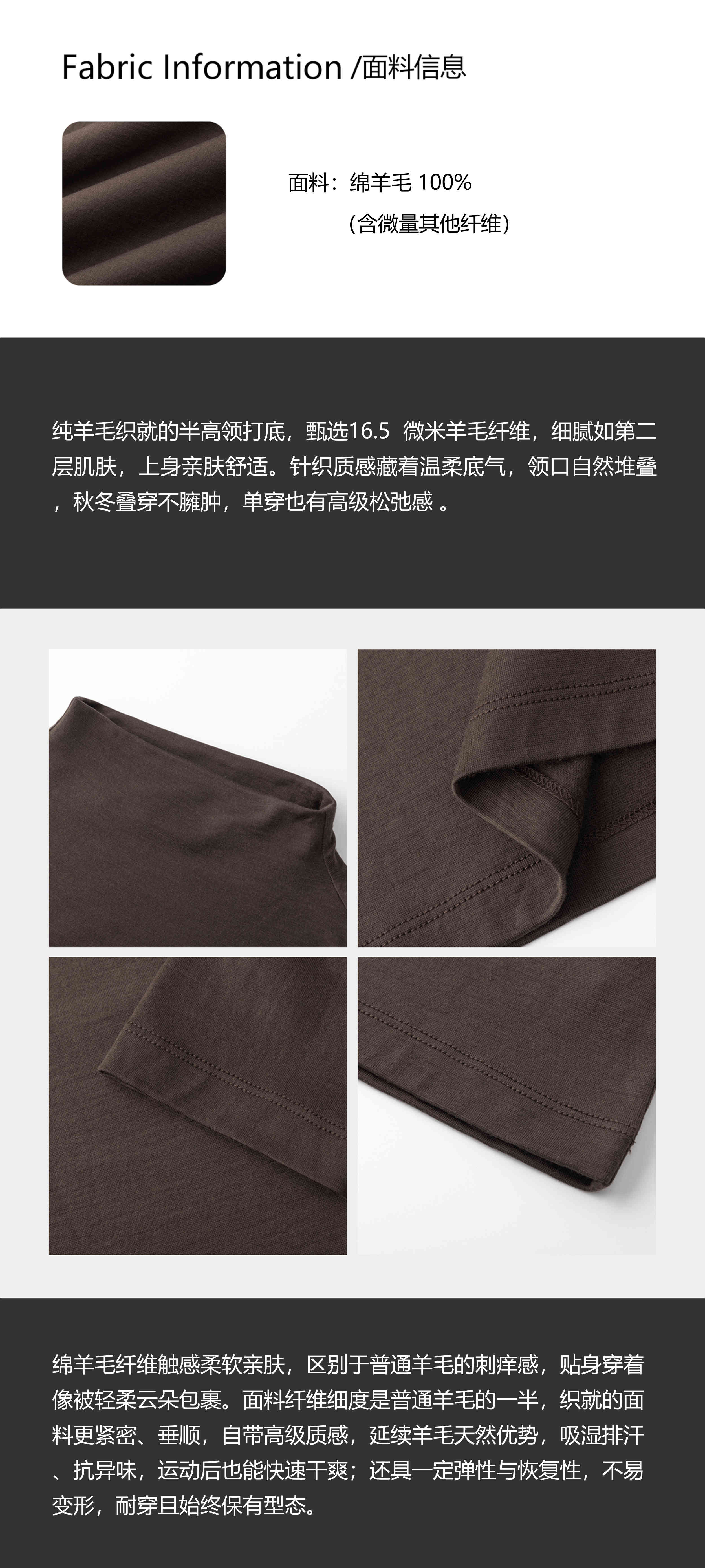 COCO ZONE 刘一一“肤感半高领”100绵羊毛长袖T恤 CD1A1092