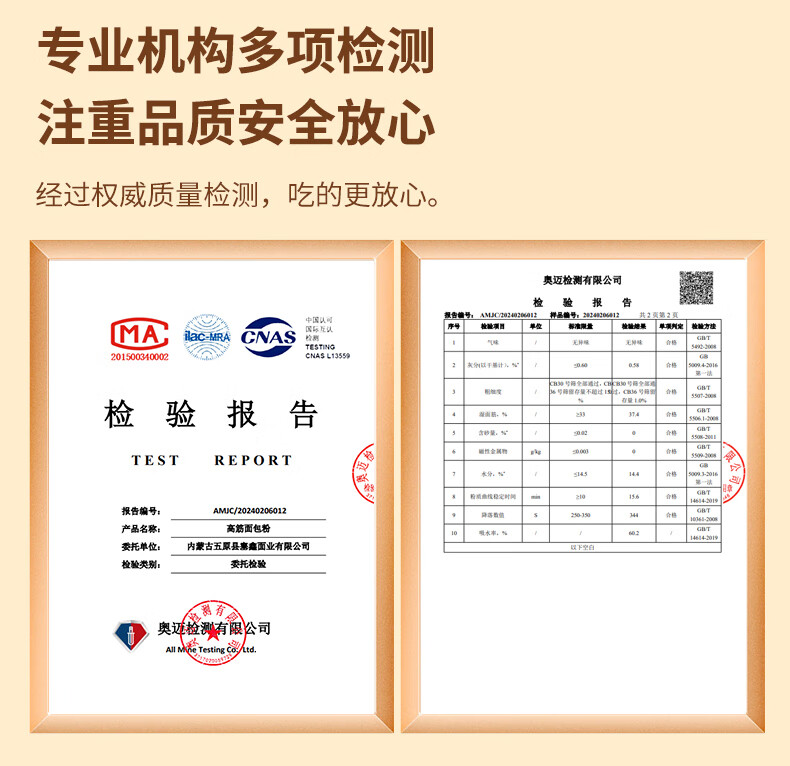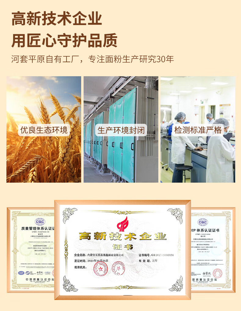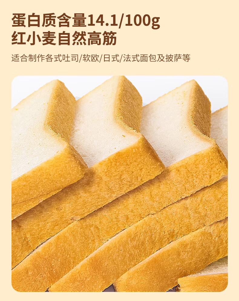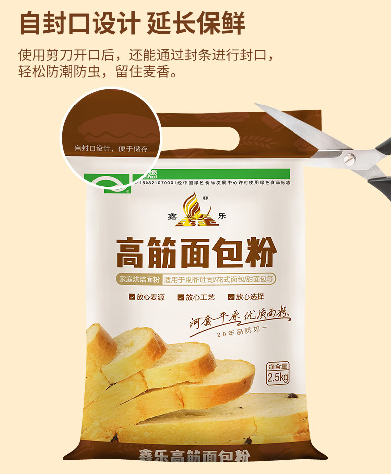 鑫乐 面包粉 河套平原红小麦自然高筋 蛋白质14.1g 无添加绿色食品 2.5kg/袋
