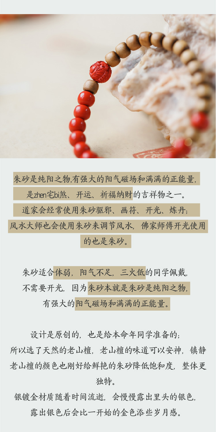 米马原创设计 本命年必收!高含量95%及以上避太岁朱砂手串 提升阳气磁场