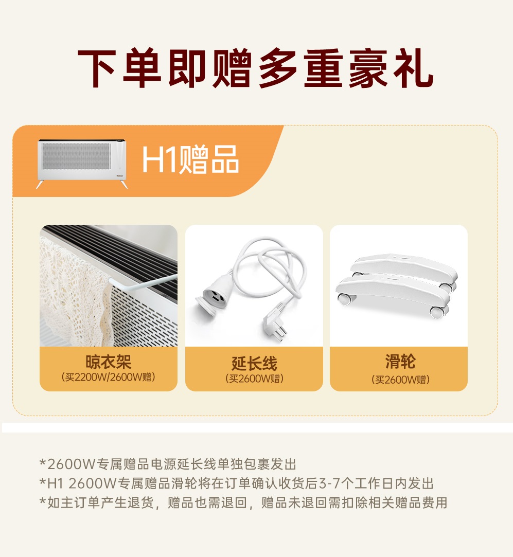 温馨提示:2600W配赠赠品单独发出,请大家留意多包裹哟~ 【发货政策】 发货时效:48小时,每天15:00截单,周日及法定节假日不发货 发货物流:顺丰快递 发货地址:广东 包邮政策:海外及港澳台、西藏不发货;新疆、内蒙古需补邮差100元/台 注:商品发出后,如因个人原因需要拦截/拒收/转寄,需请买家自行承担相关拦截/拒收/转寄运费,具体运费以实际产生为准。 【售后政策】 1、支持7天无理由退货,需保证商品完好,包装无损,配件齐全,非质量原因退货运费由买家承担;自购买日起3年内机器出现非人为原因故障免直接换新;3年后,收取维修费用提供维修服务。 2、售后运费规定:自购买日起1年内机器出现非人为原因故障换新往返运费均由品牌方承担;超过1年以上2年以内机器出现非人为原因故障换新寄回运费由买家承担,寄出运费由品牌方承担;超过2年以上3年以内机器出现非人为原因故障换新往返运费均由买家承担。超过3年以上(不含3年)故障维修费用及往返运费均由买家承担。 |