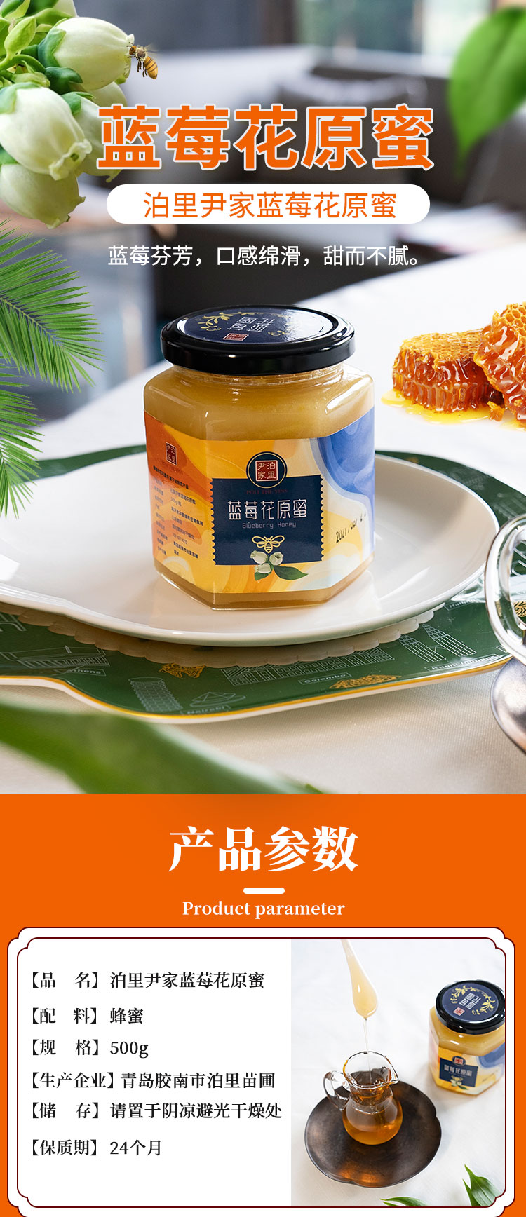 包邮 尹家泊里蓝莓花原蜜蜂蜜500g 酿蜜期长 自然成熟
