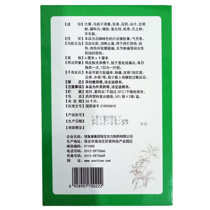 多盒优惠】东乐膏6片 跌打损伤扭伤挫伤腰腿痛关节肿痛软组织损伤