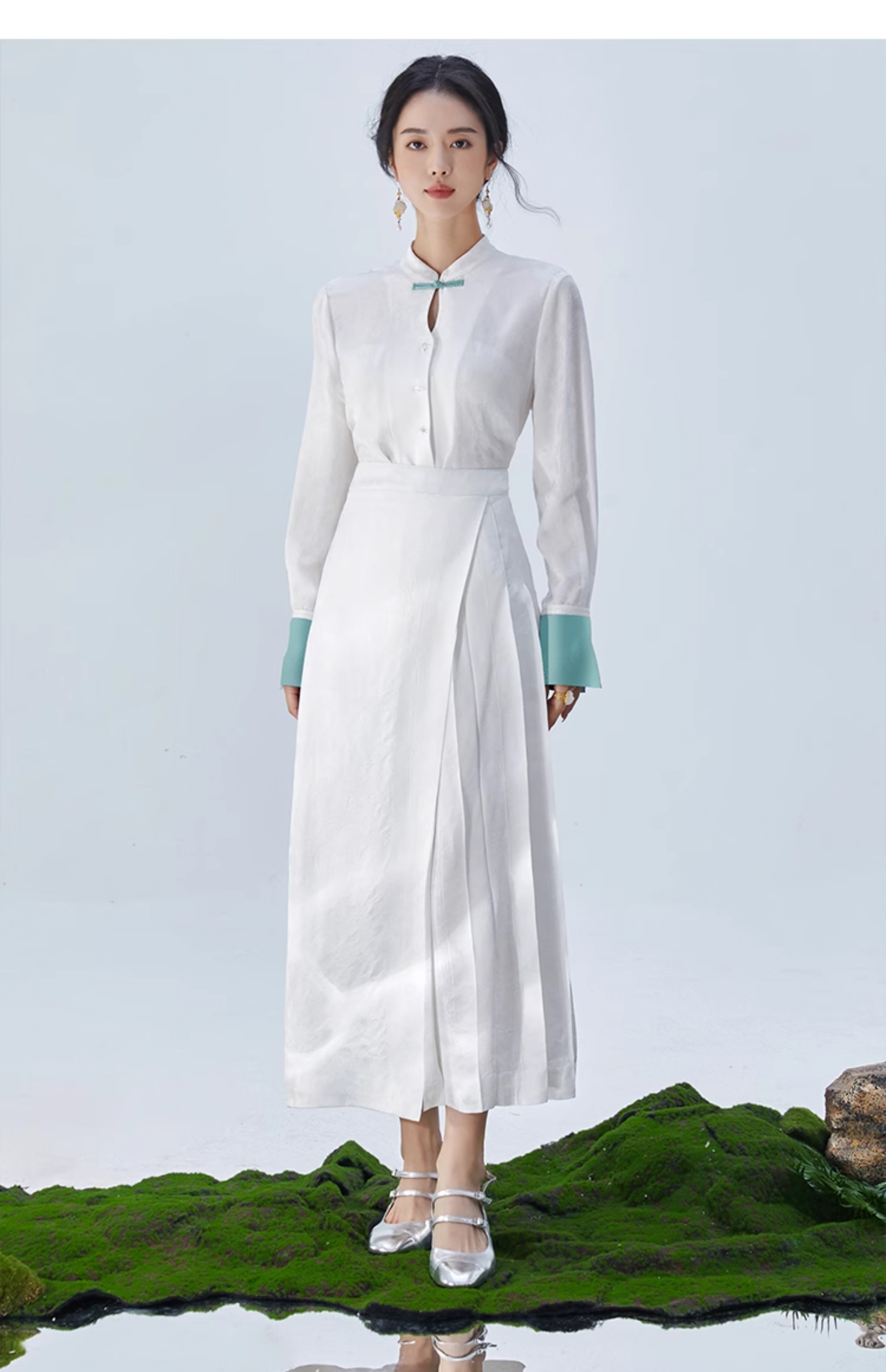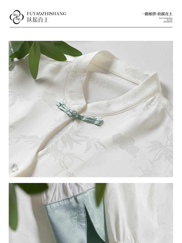 FUYAO扶摇 文艺国风白衬衫小立领刺绣上衣打底衬衫女2025秋季新款
