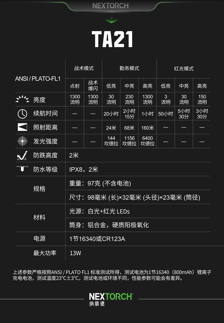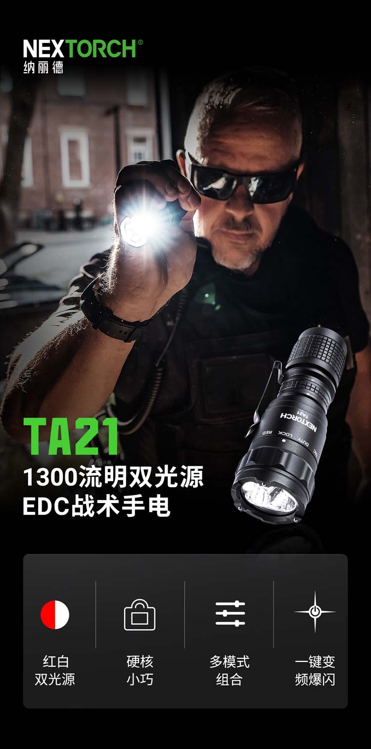 纳丽德 【新品】TA21多光源设计EDC战术手电白红光IR光强光手电