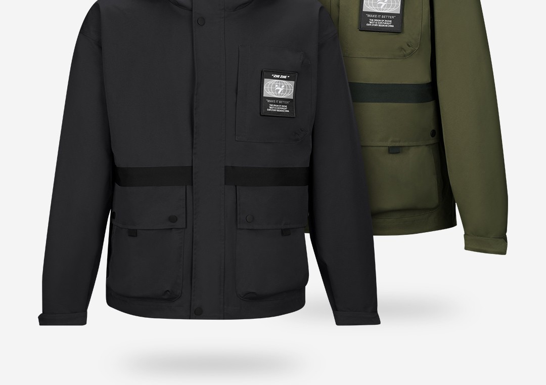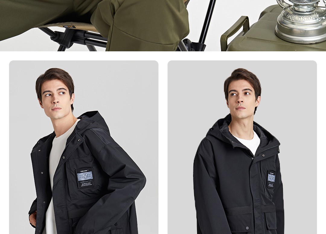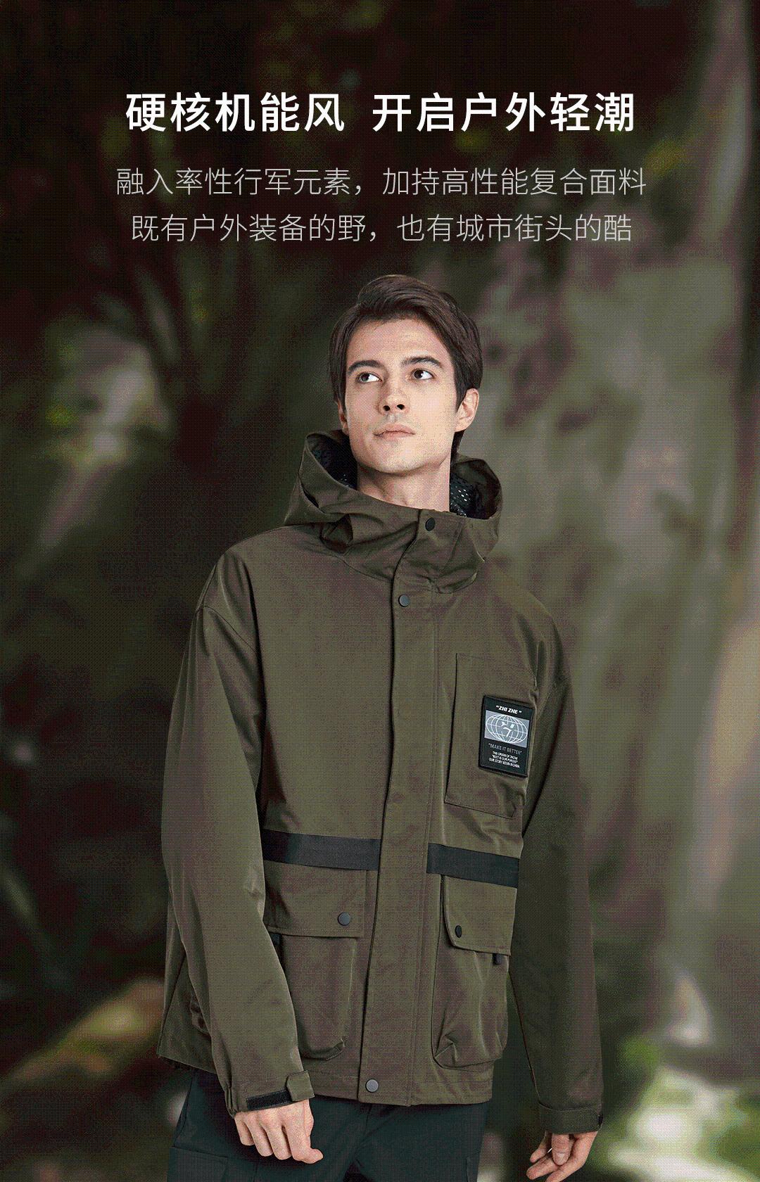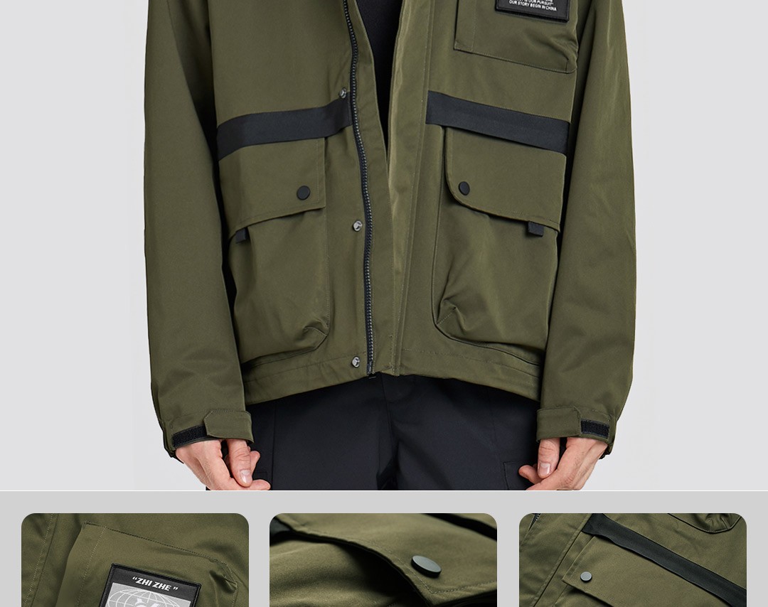 连帽科技面料防风防水防污工装外套百搭四级防水风衣男士休闲冲锋衣 军绿色 165/84A